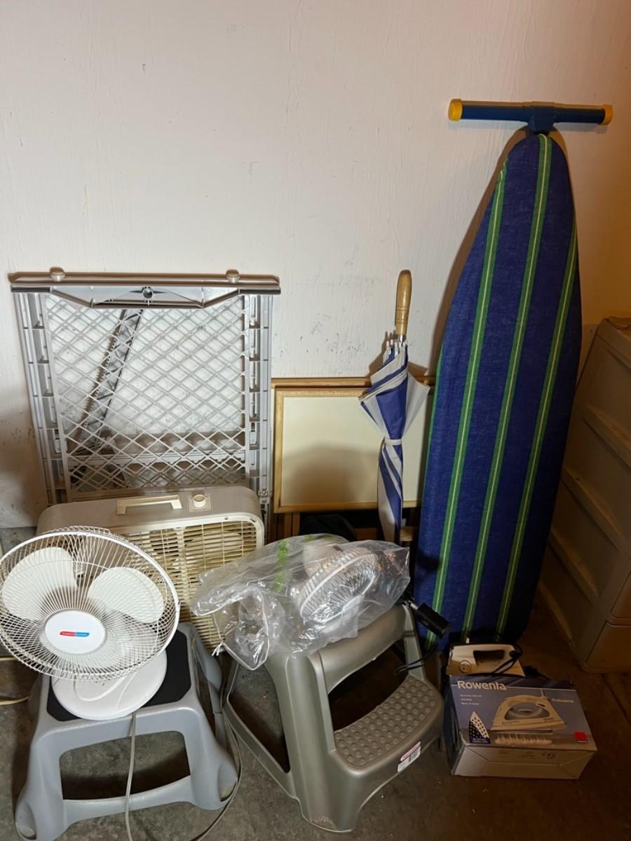 Misc. Household Lot Step Stool, Animal Gates, Fans, Iron, Ironing Board