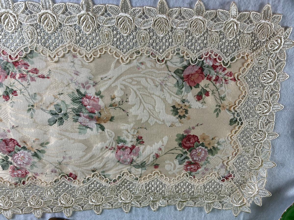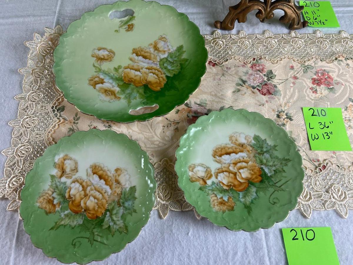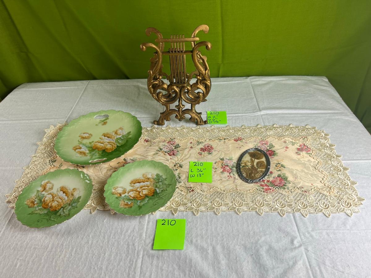 3 plates, table runner 36" x 13", window hanging 6" x 3.5", small plates German, gold colored music symbol rack metal 11" x 6.5" x 7.5", large Germany plate.