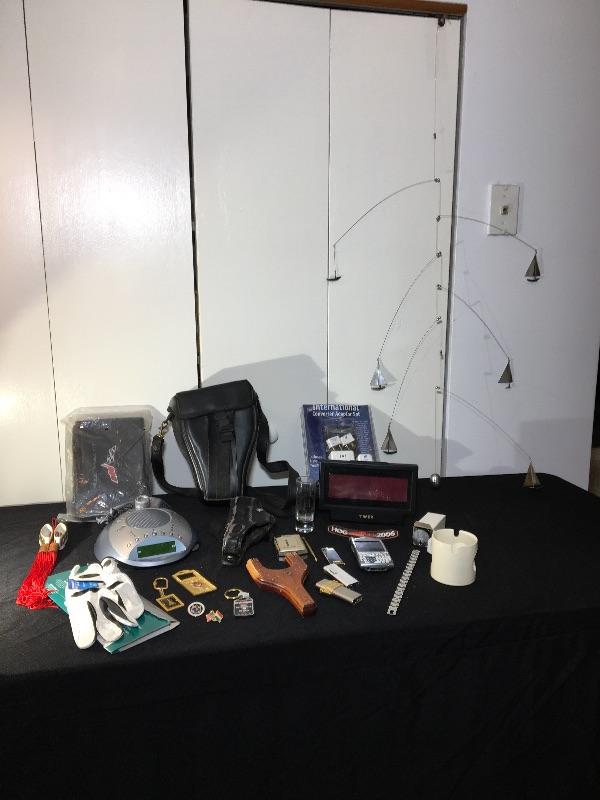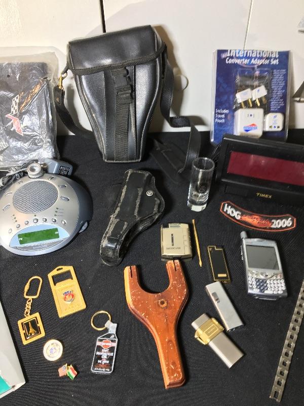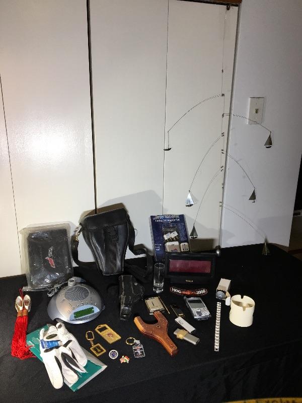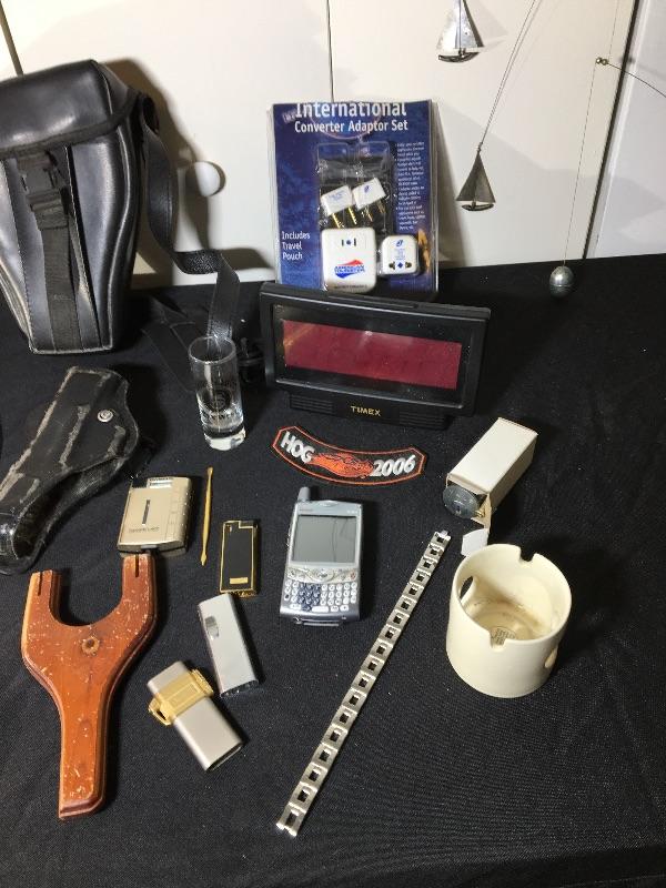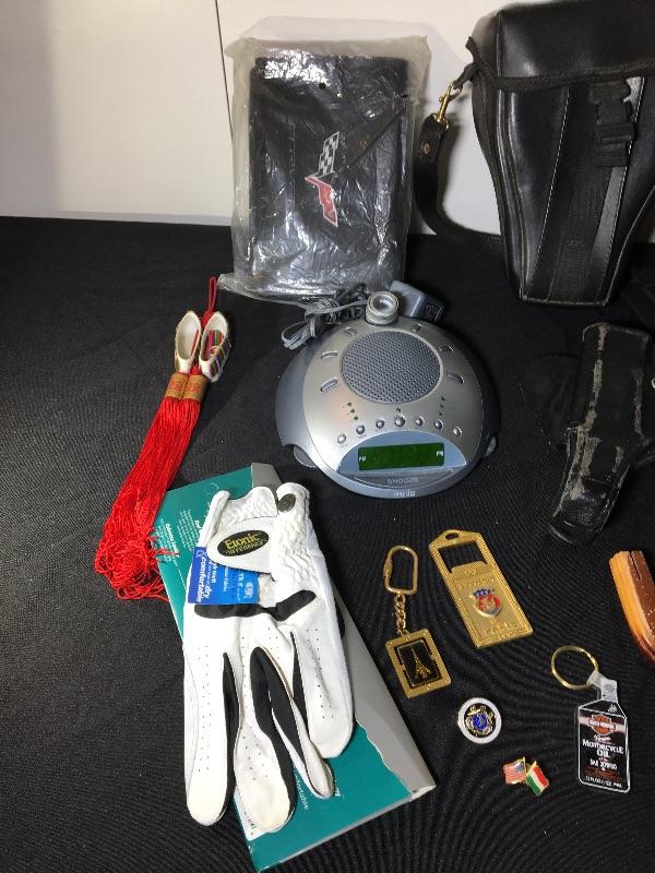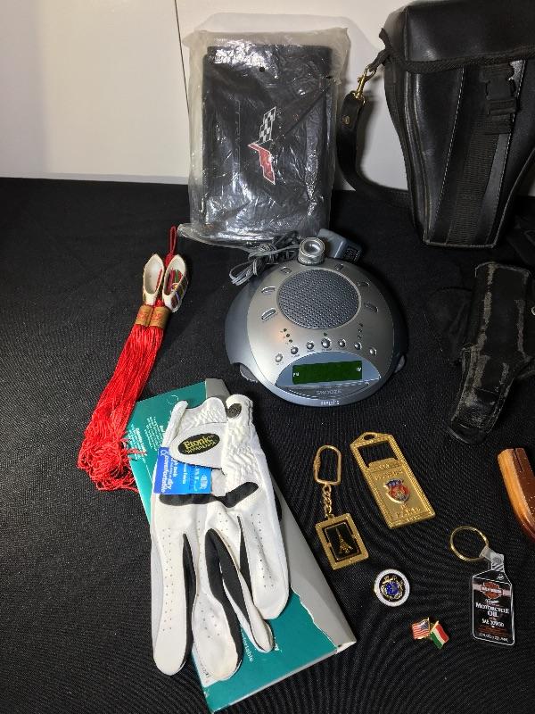 MISC ITEMS -Gun Holster, case, golf glove, mobile -sailboats, watch band