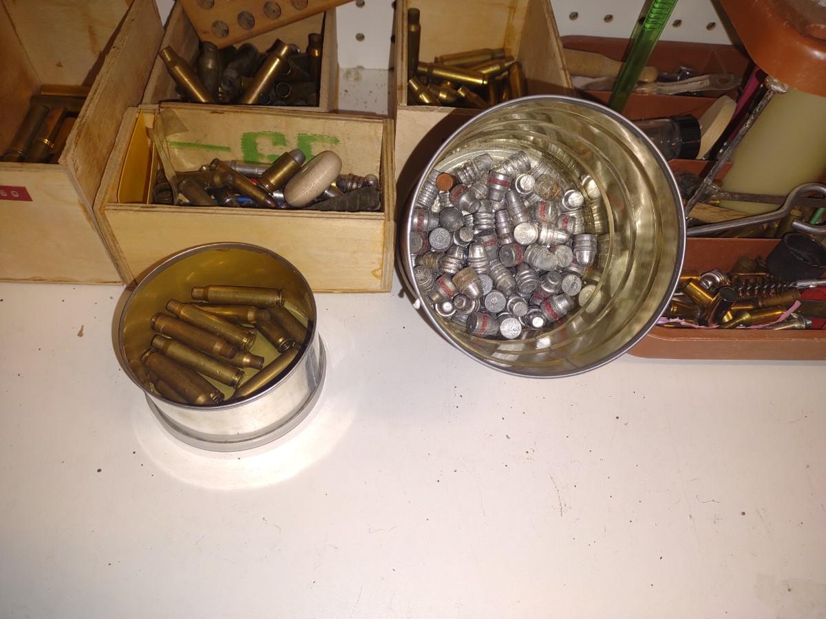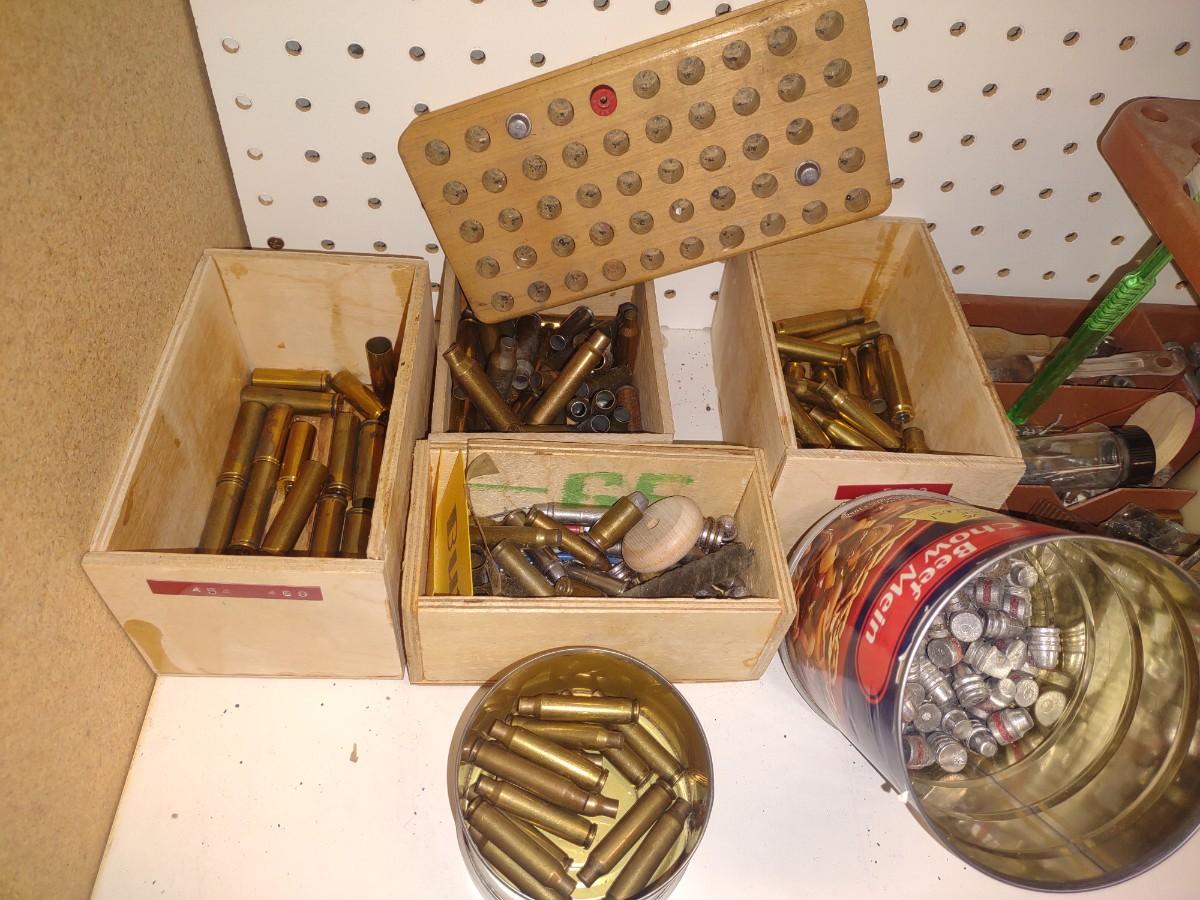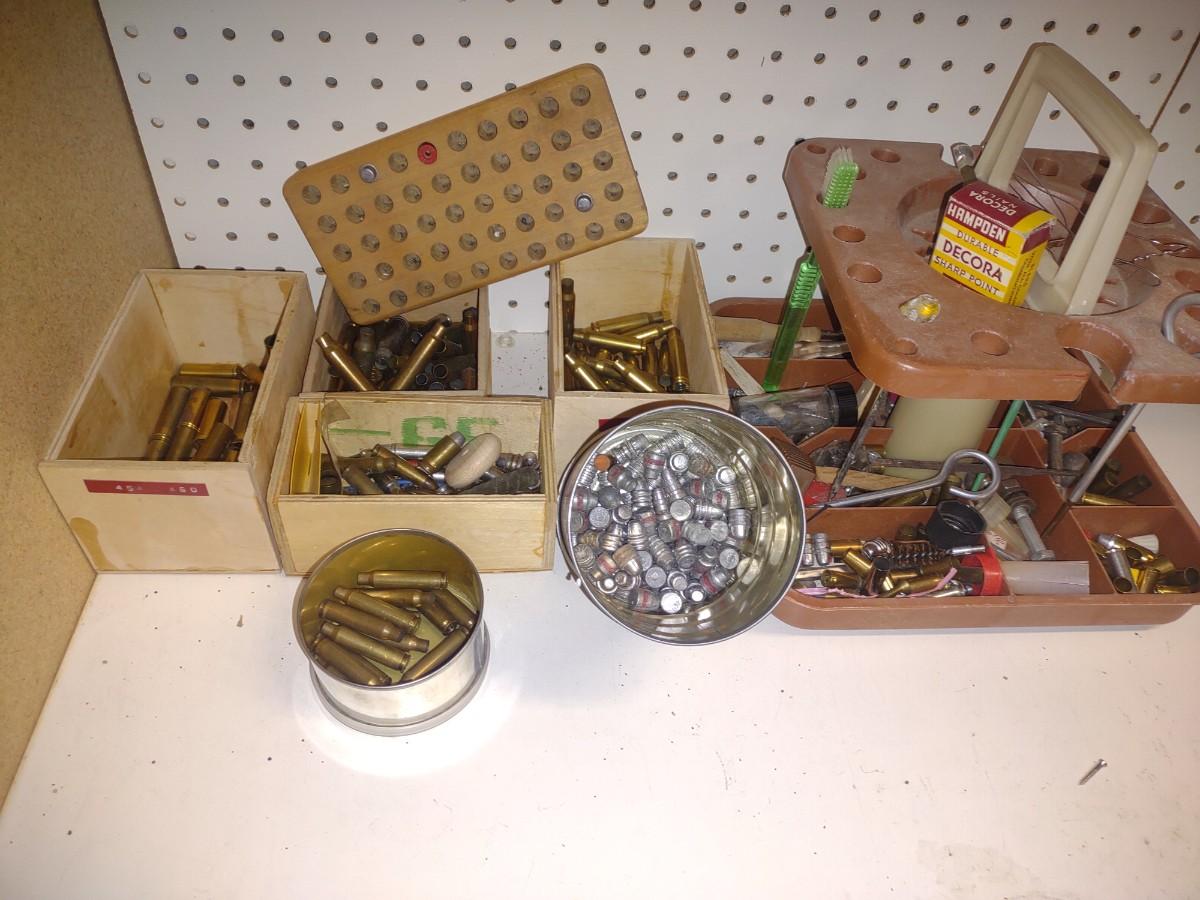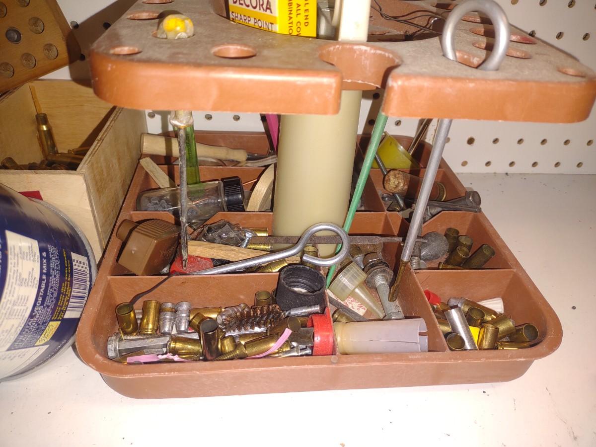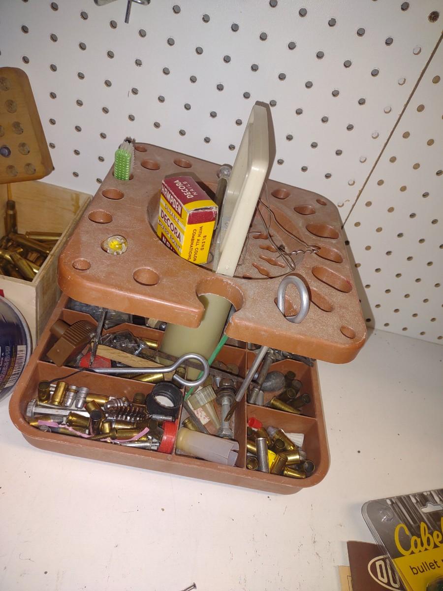MISC ITEMS IN A BENCHTOP ORGANIZER AND RELOADING SUPPLIES