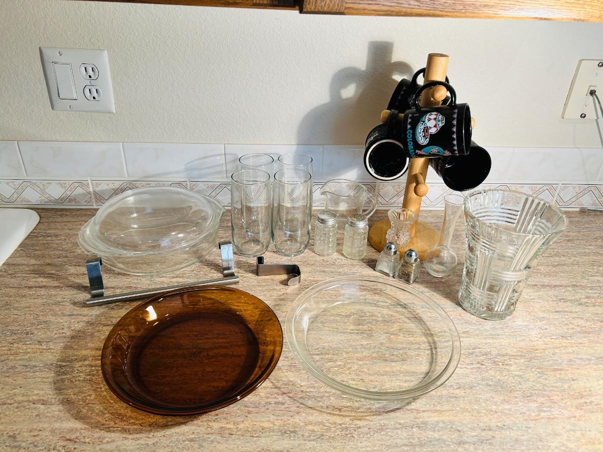 MISC KITCHEN GLASSWARE AND OTHER ITEMS