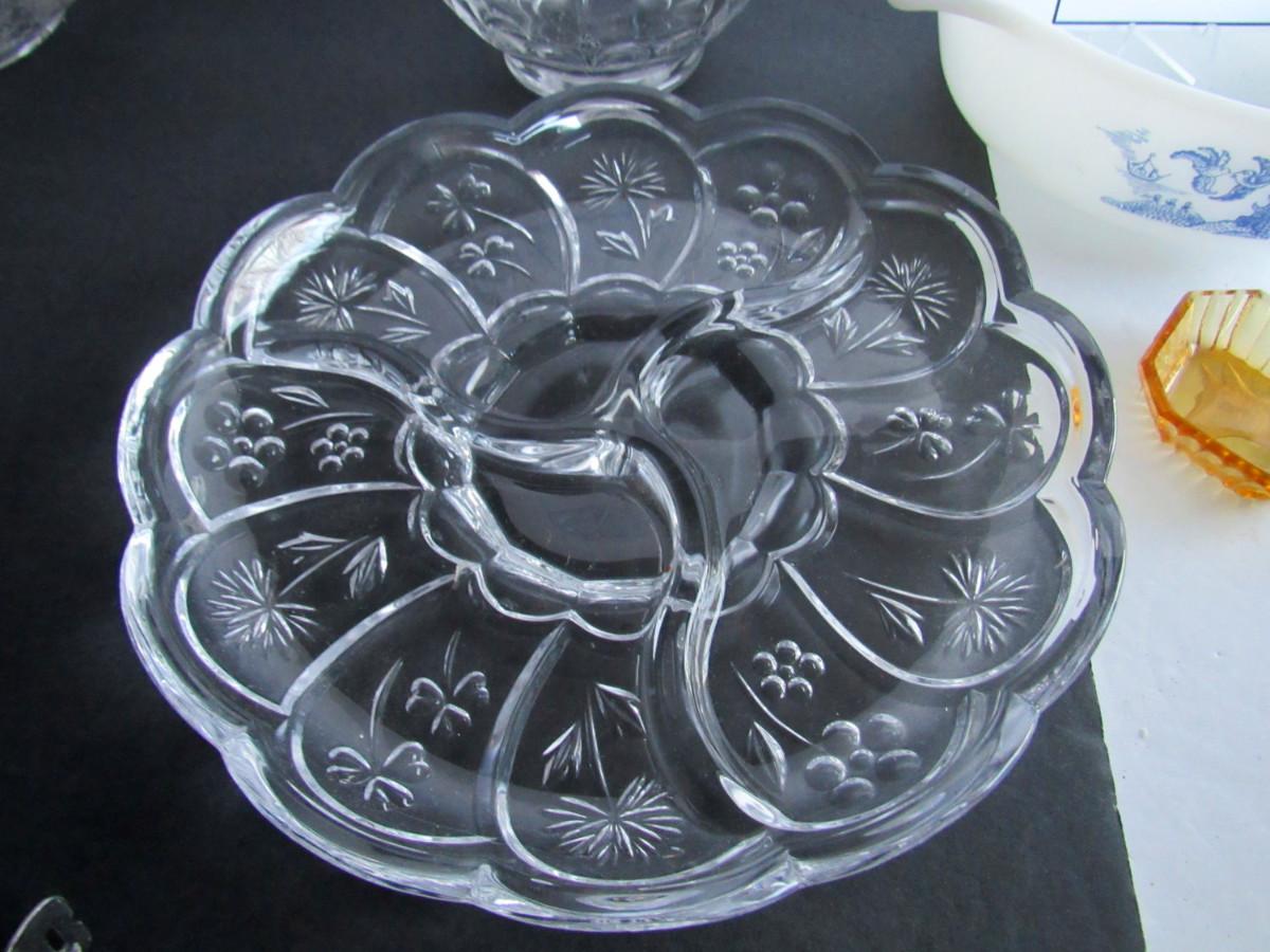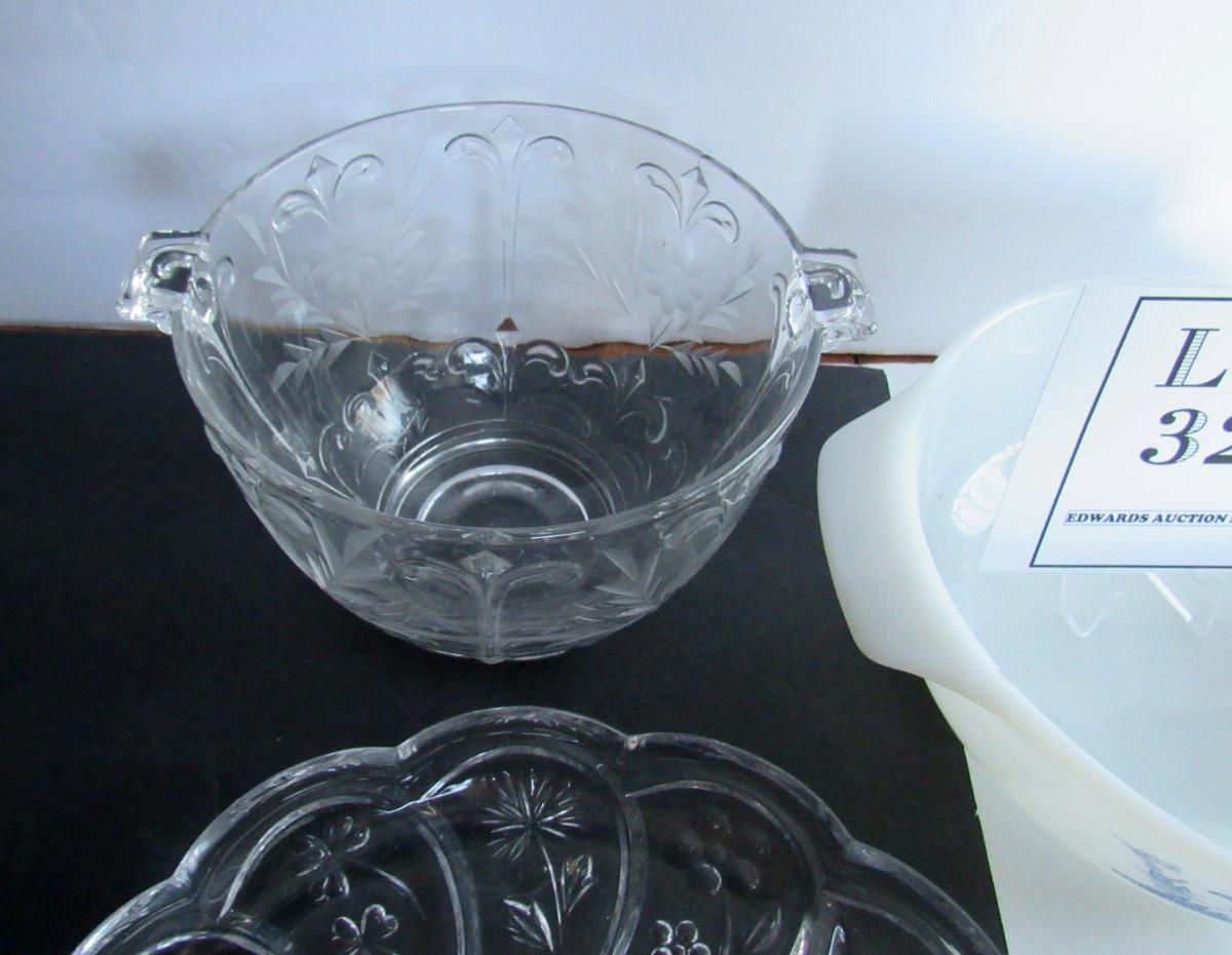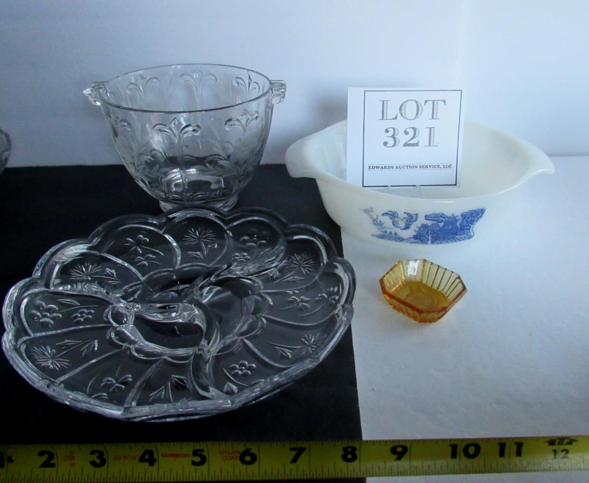 Misc Kitchen Glassware Lot, Salt Dip, Ice Bucket, Tray, Casserole