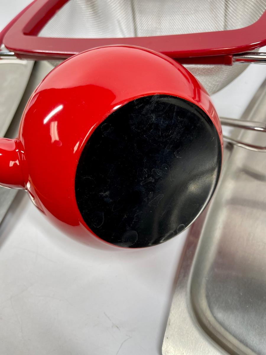 n good used condition - a few scratches on trays, water stain Inside tea kettle.