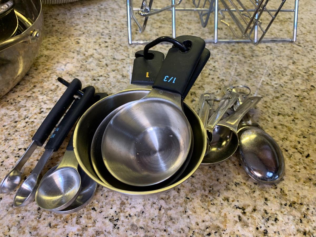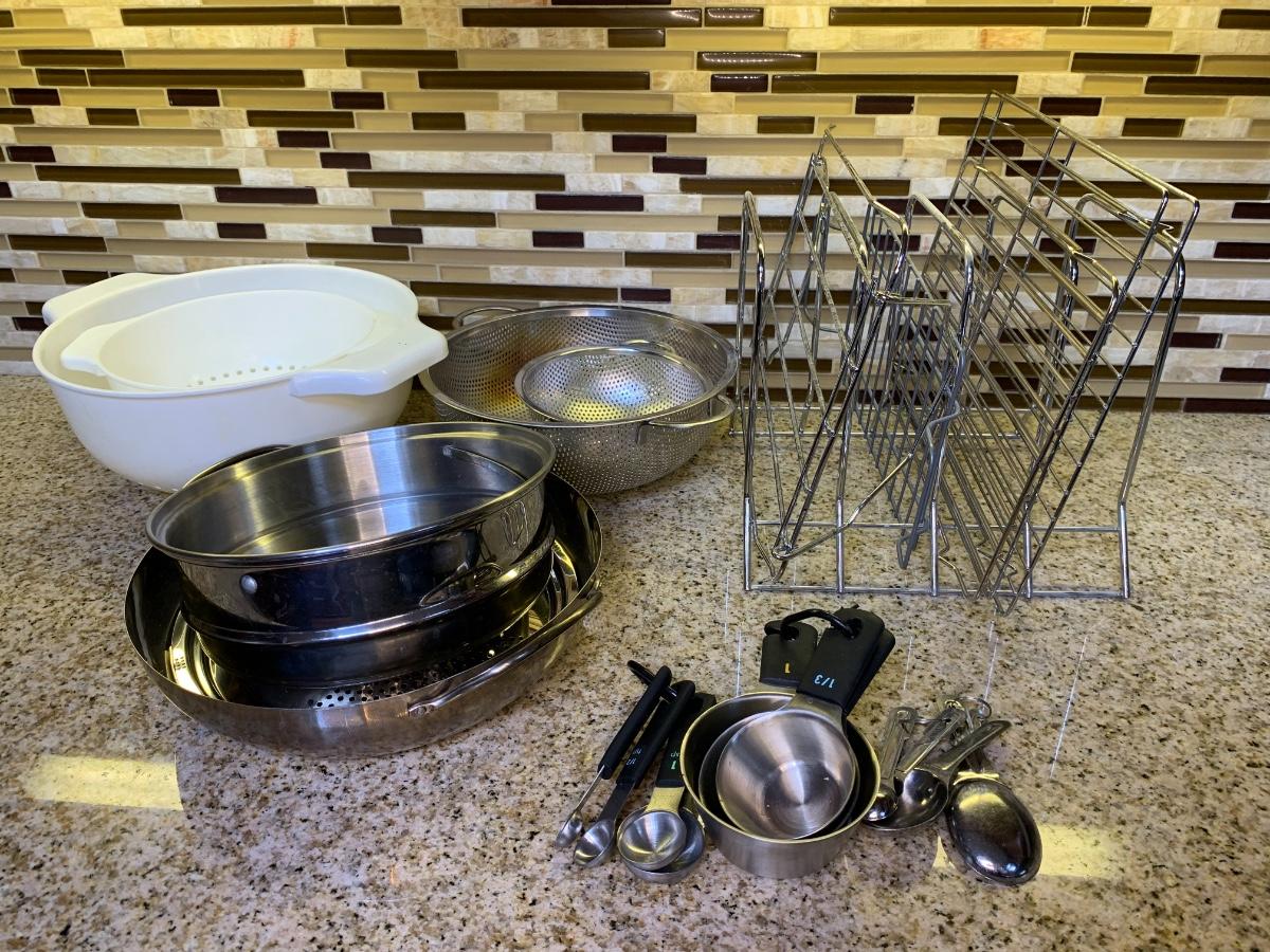 Misc. Kitchen - measuring cups, strainers, pans, cooking racks