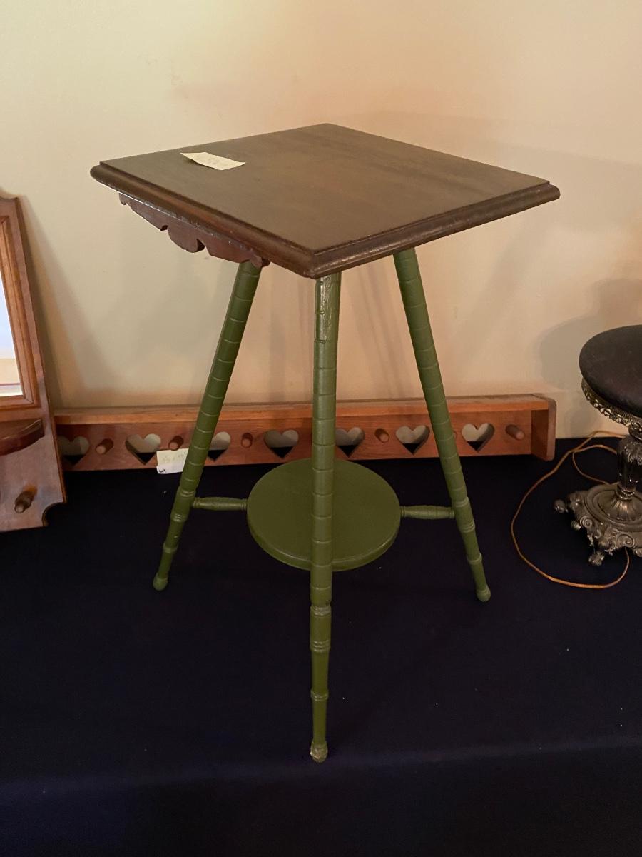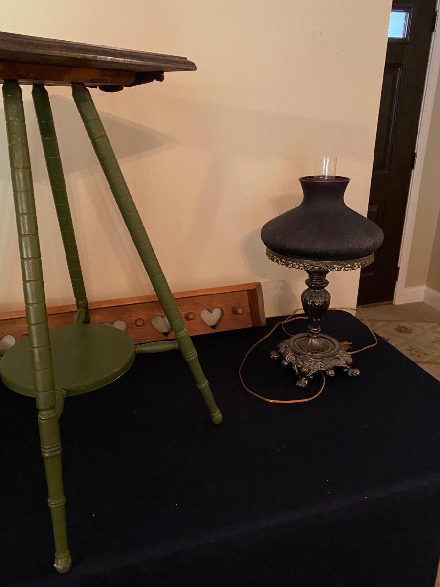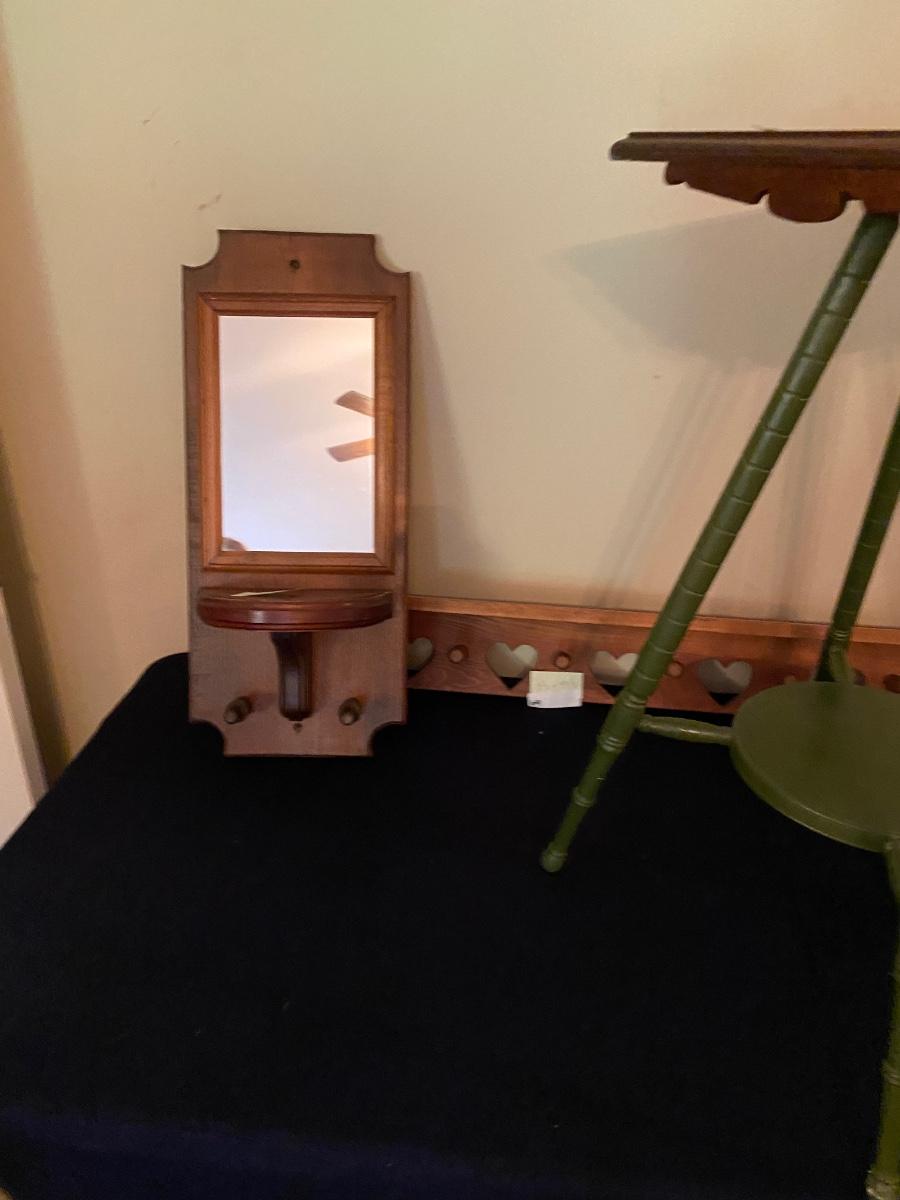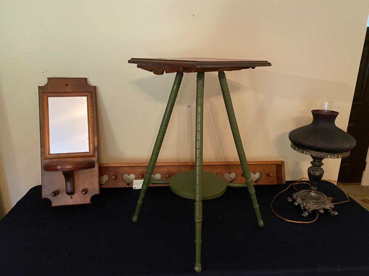Heavy Lamp w/ Glass Shade, Heart Wood Wall Shelf, Mirror Shelf, Vintage Oak Accent Table