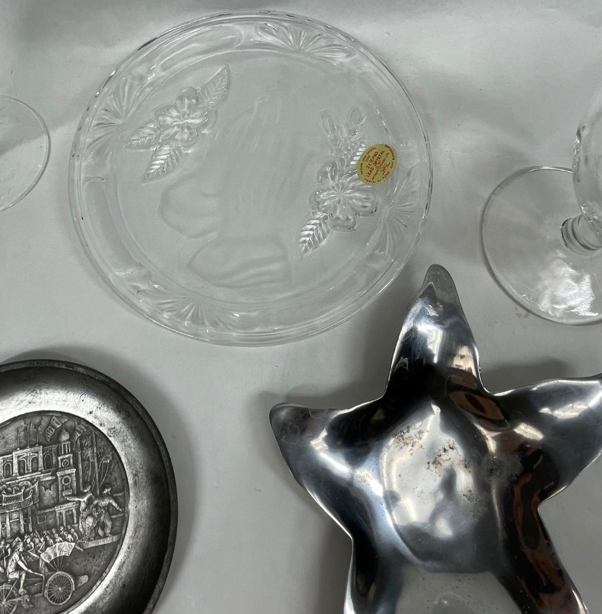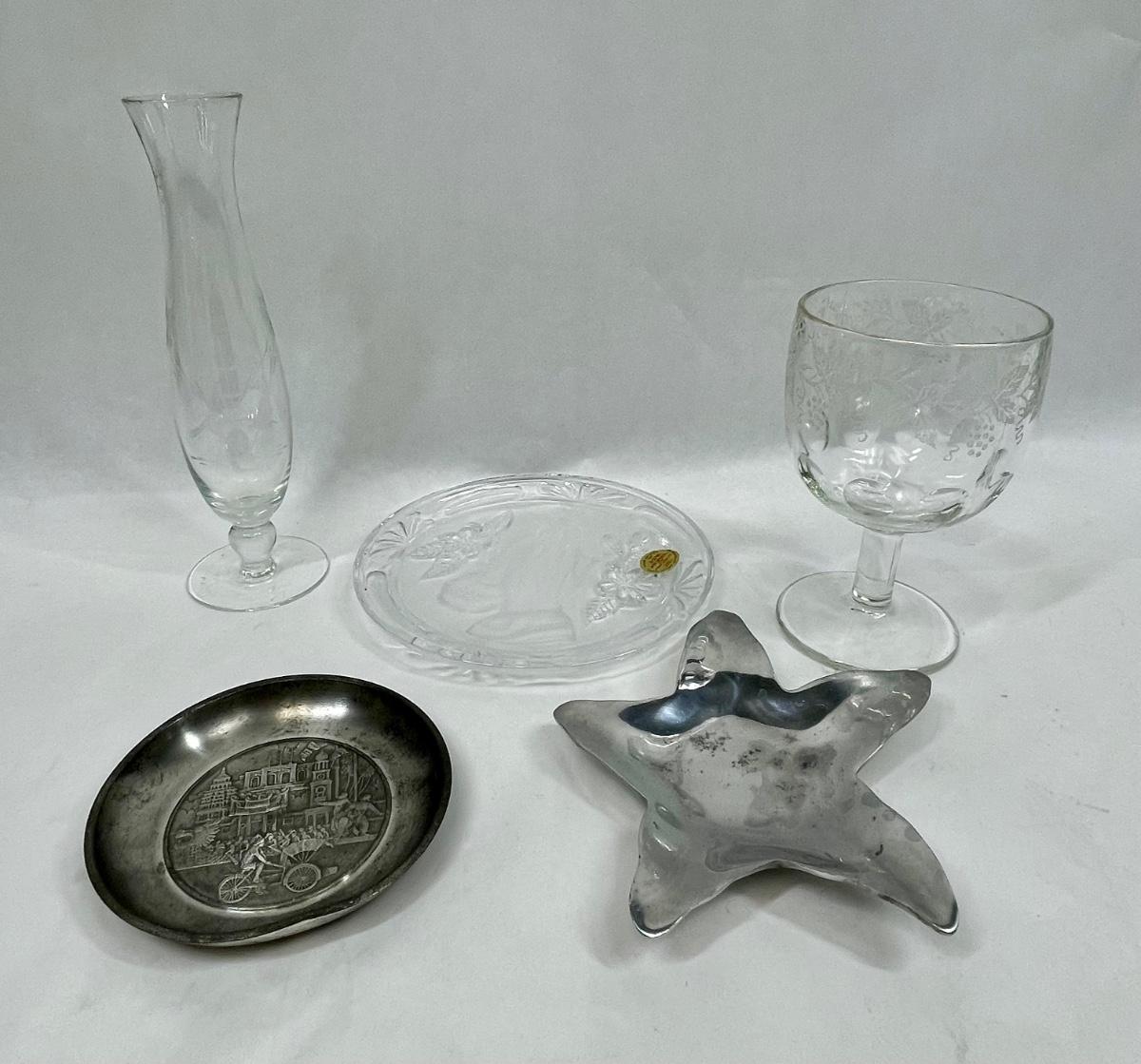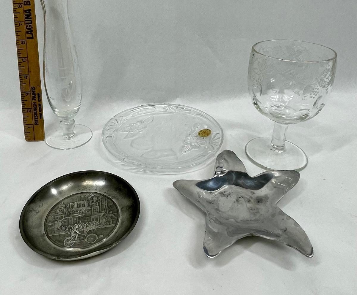 Misc lot - beverage glasses, trinket dishes, plates - 5 pc lot