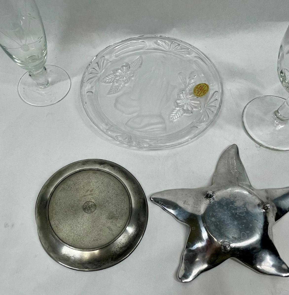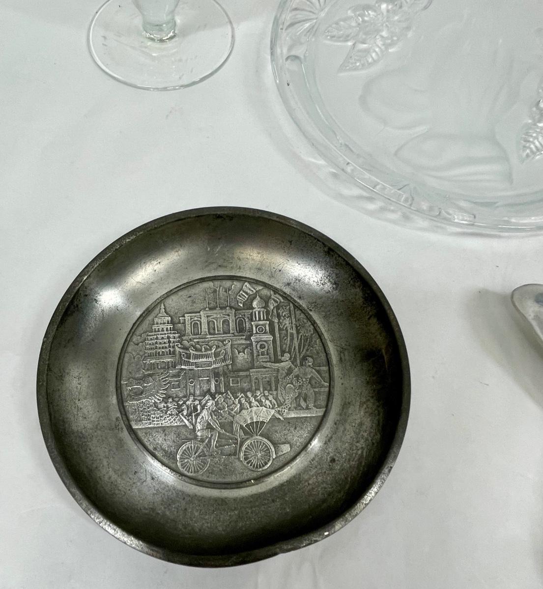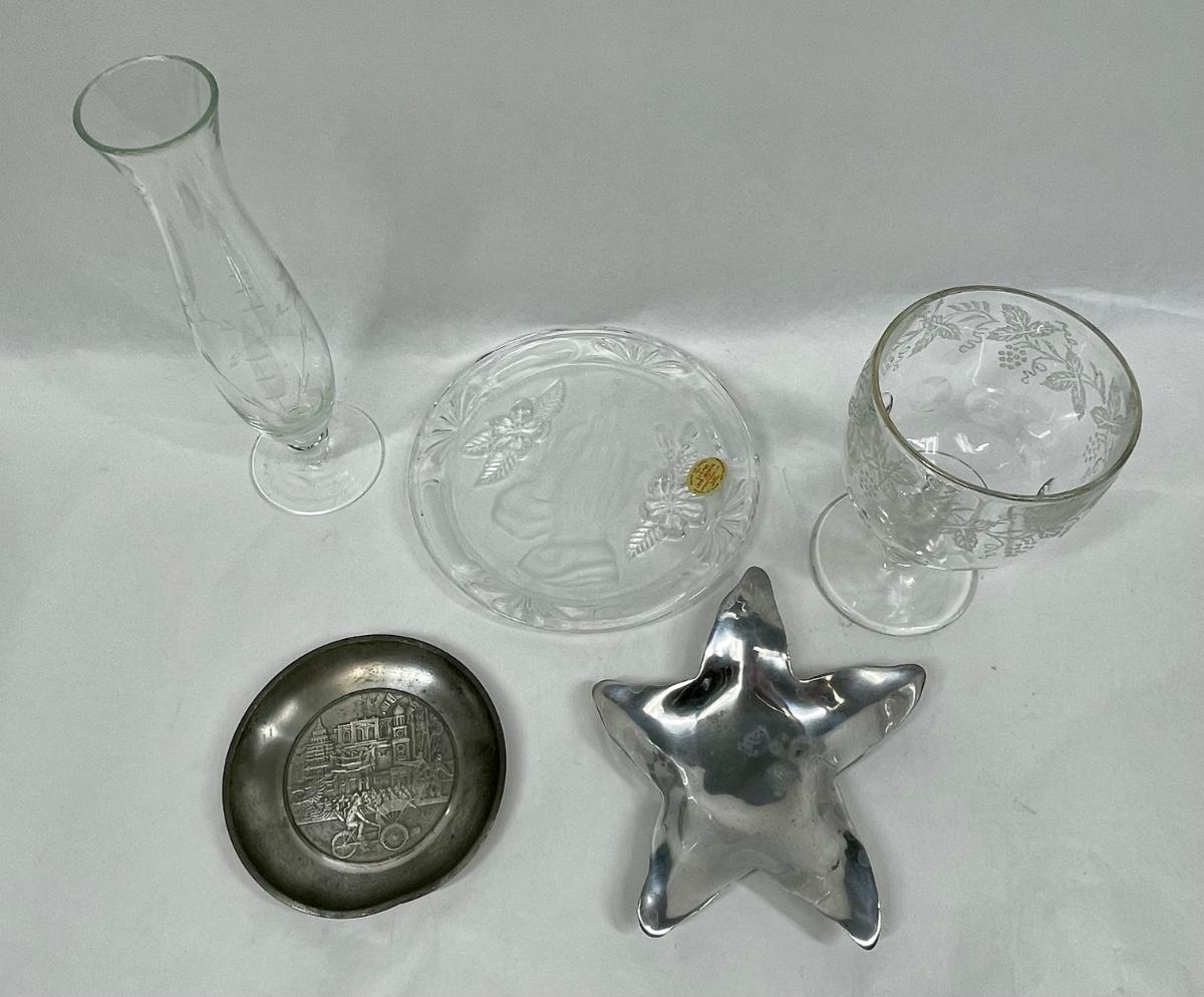 Misc lot - beverage glasses, trinket dishes, plates - 5 pc lot