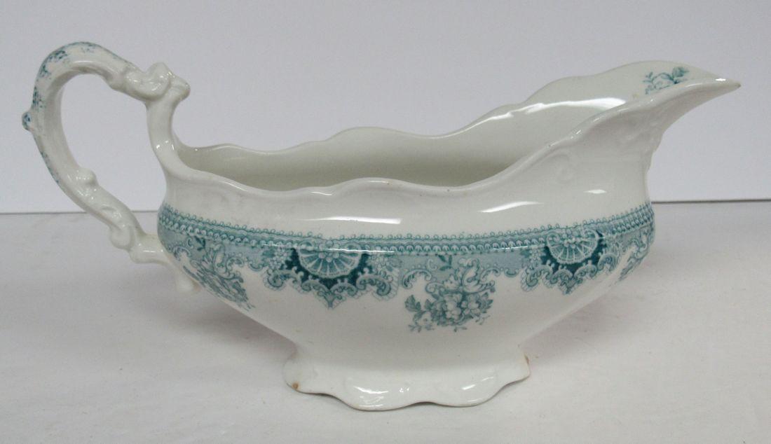 Gravy has a chip on bottom as seen in photos. Creamer needs cleaning and has wear. Shipping is available at shipping cost plus $5.00 handling fee on up to 6 lots, $10.00 handling fee on 7 or more lots or two boxes. $15.00 handling fee on 3 boxes. Helps cover shipping materials and labor cost.