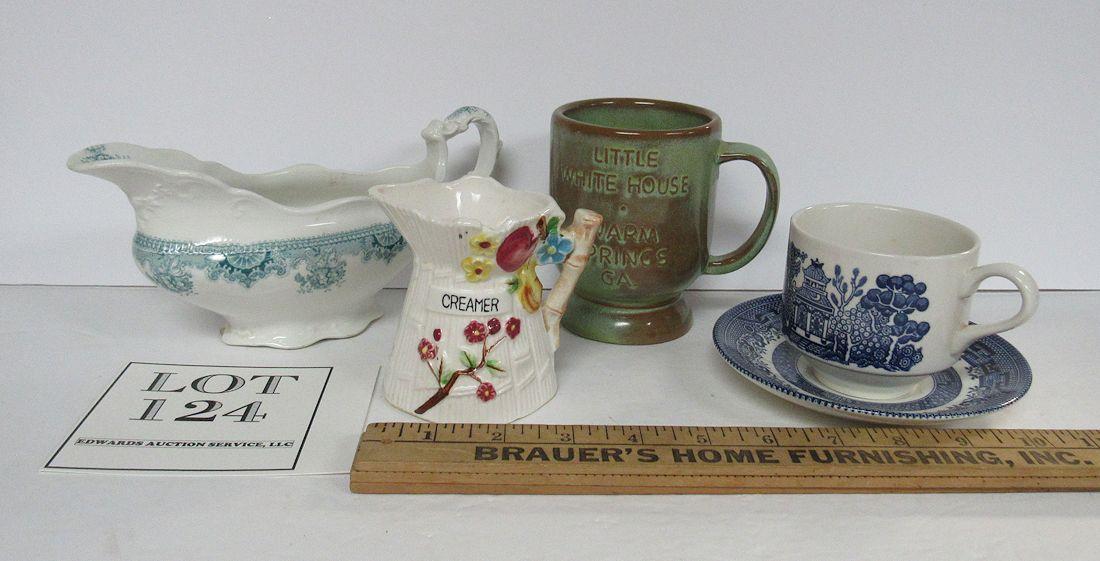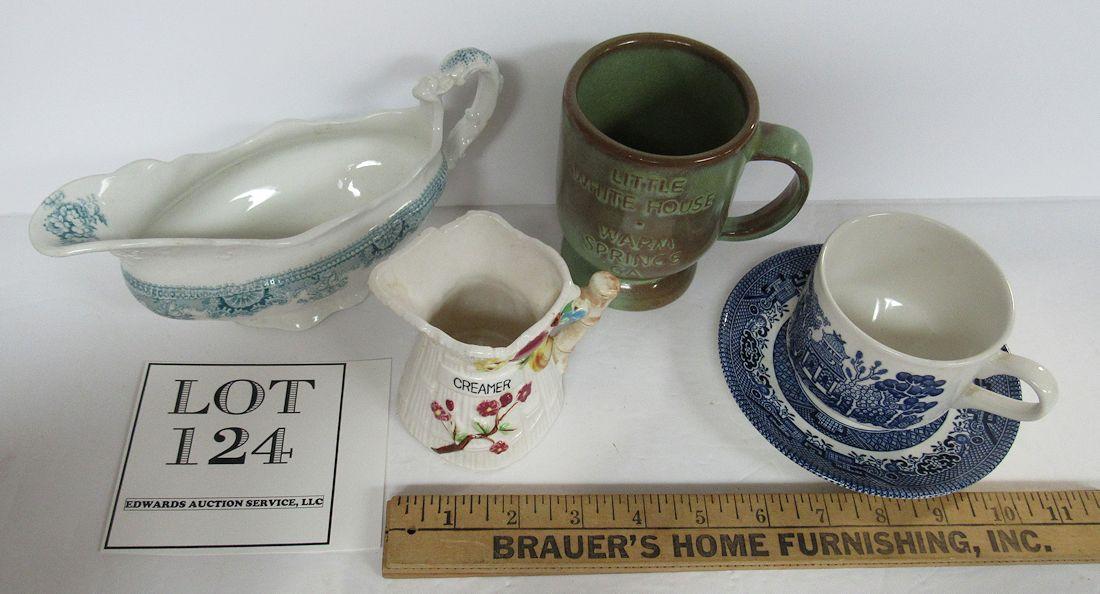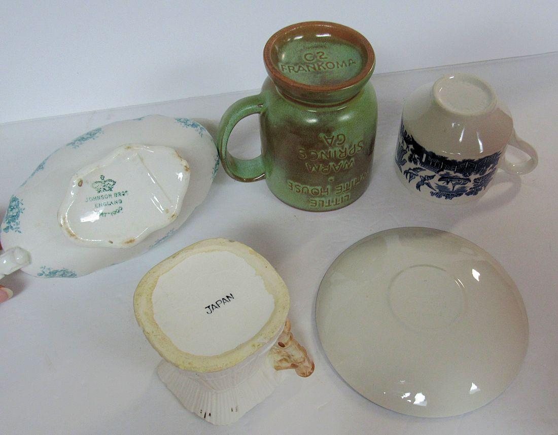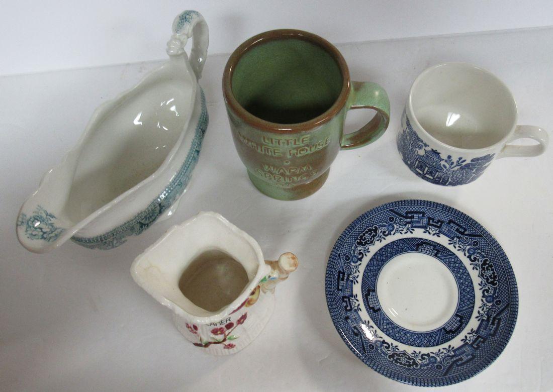 Misc Lot: Churchill England Blue Willow C/S, Frankoma Little White House Mug, Johnson Bros Eng Gravy
