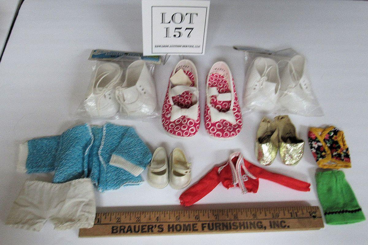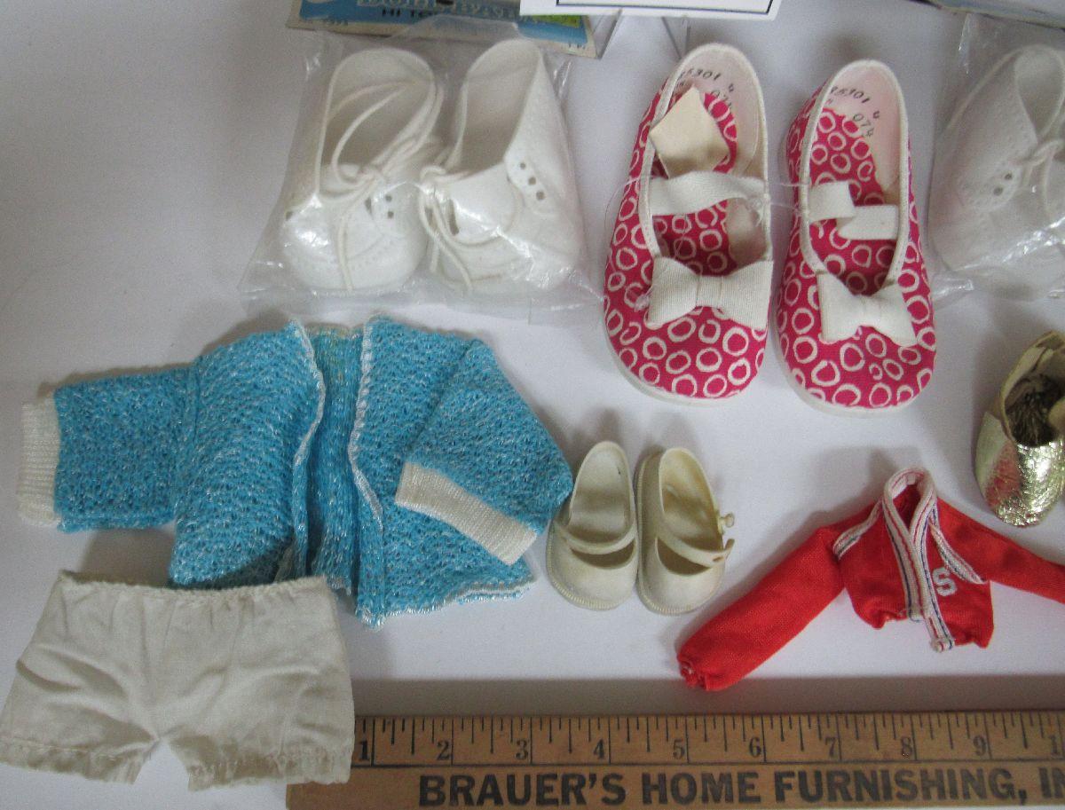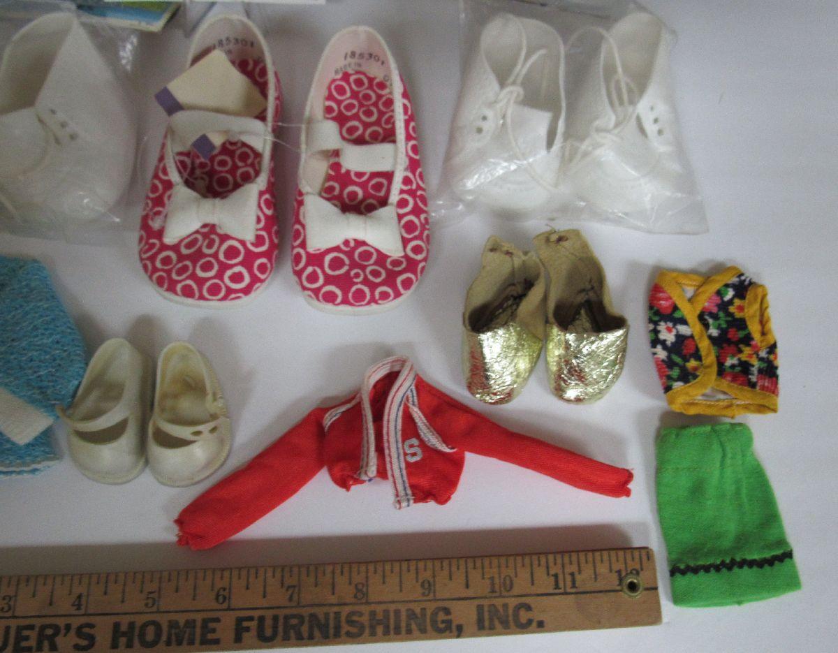 Misc Lot of Doll Shoes and Small Pair Child's Shoes, Size 4, And Small Doll Clothes