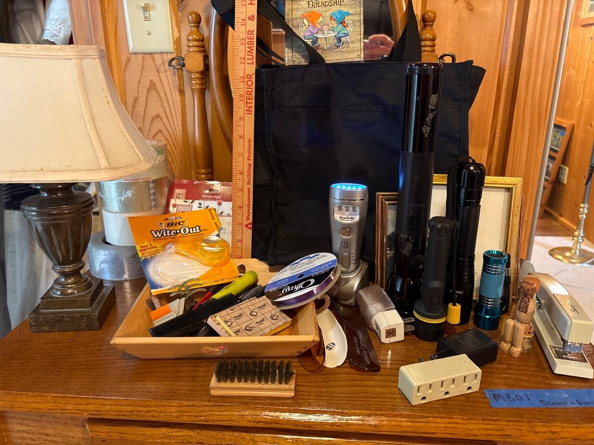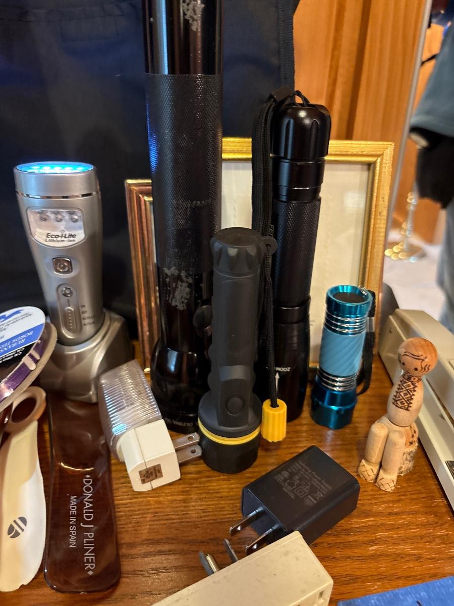 Misc lot of flashlights. Office, lamp, tape