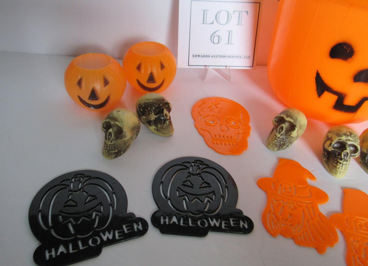 Misc Lot of Plastic Halloween Pail, Skulls, More