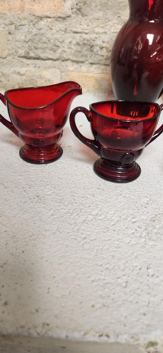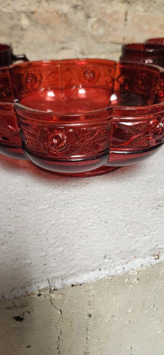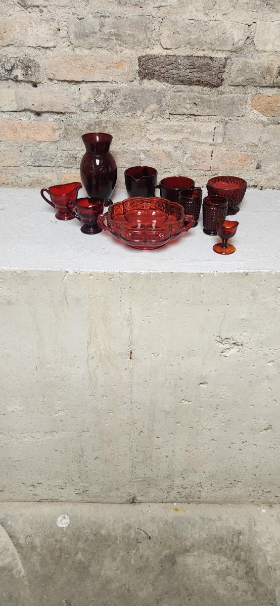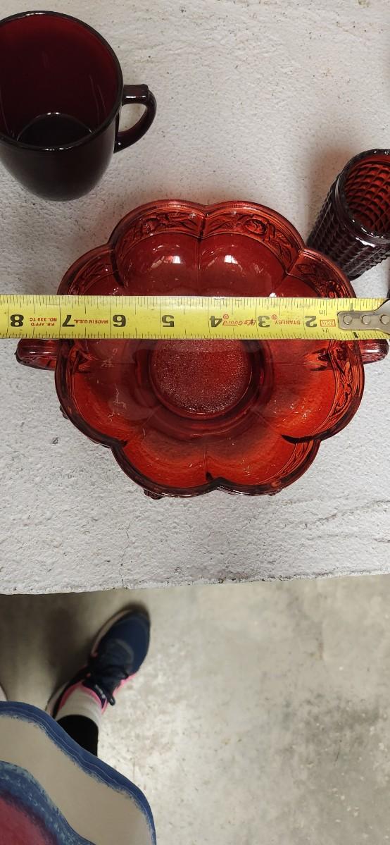 Misc lot of red glass...the scallop, handled bowl is flashed color. The rest are red glass