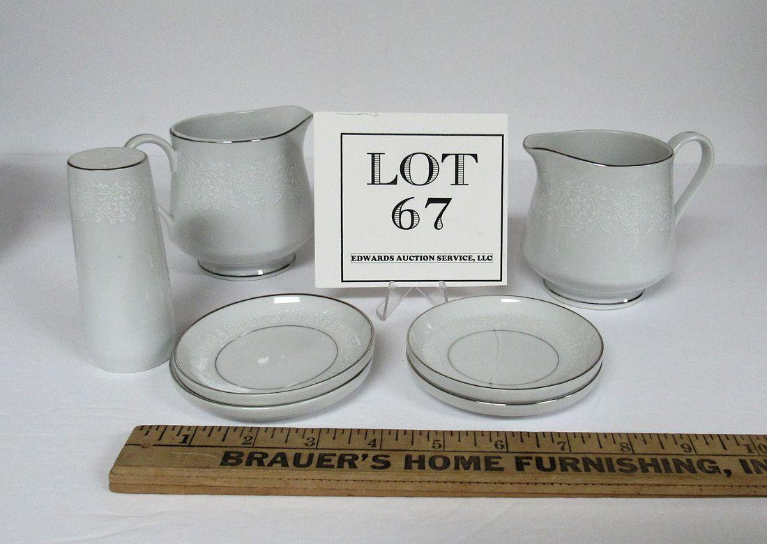Misc Lot of Vintage Crown Victoria Lovelace Fine China: Shaker, 2 Creamers, 4 Butter Pats