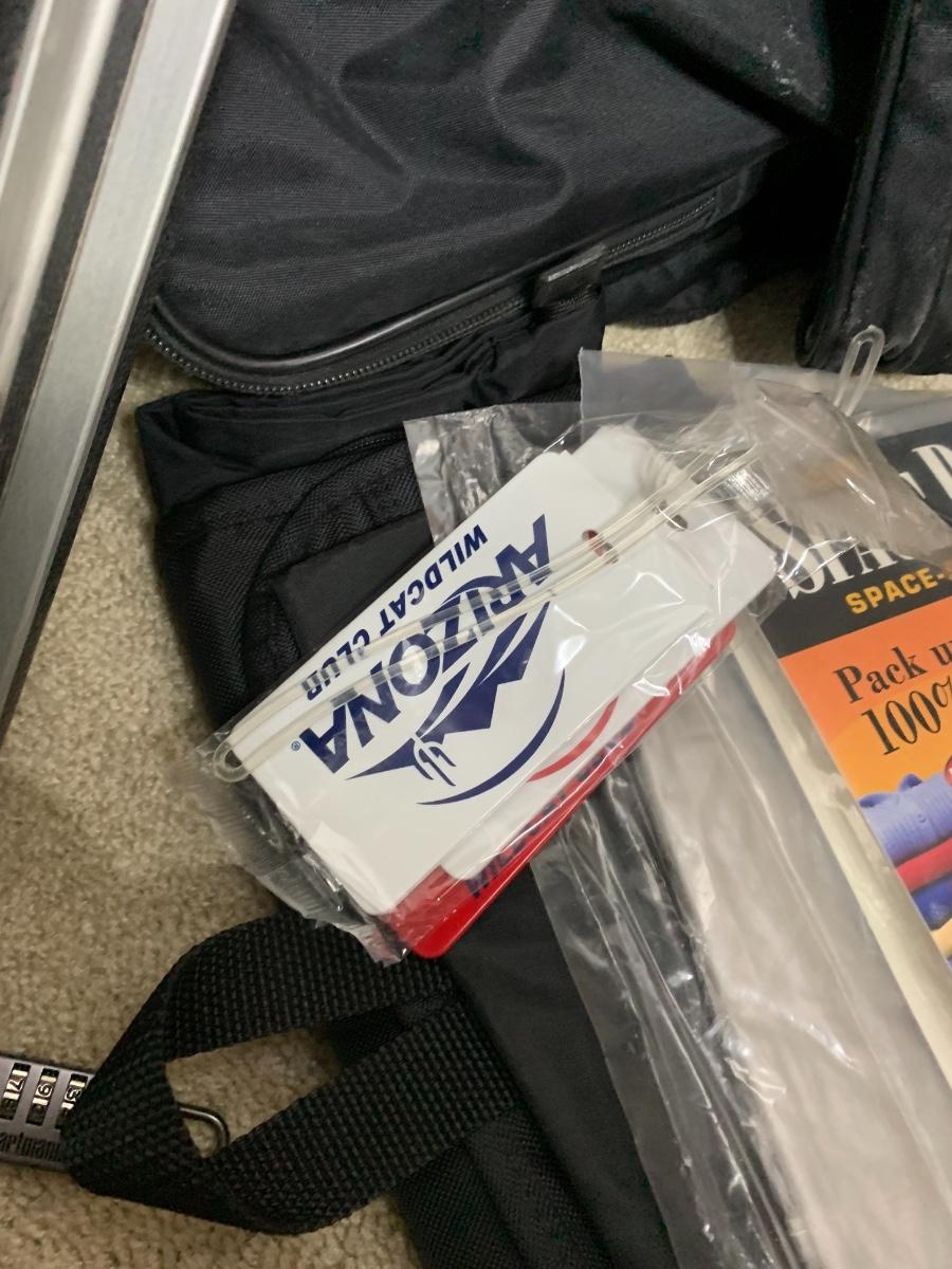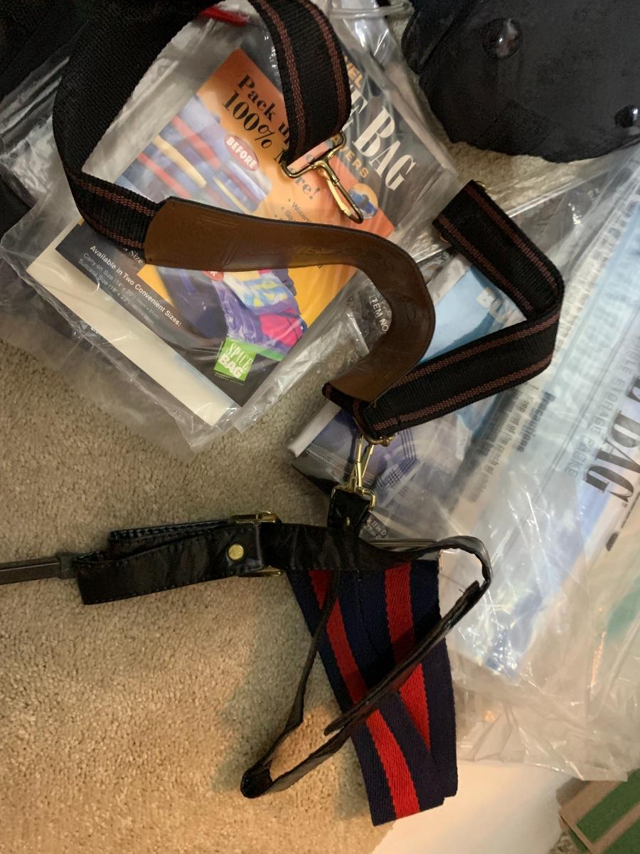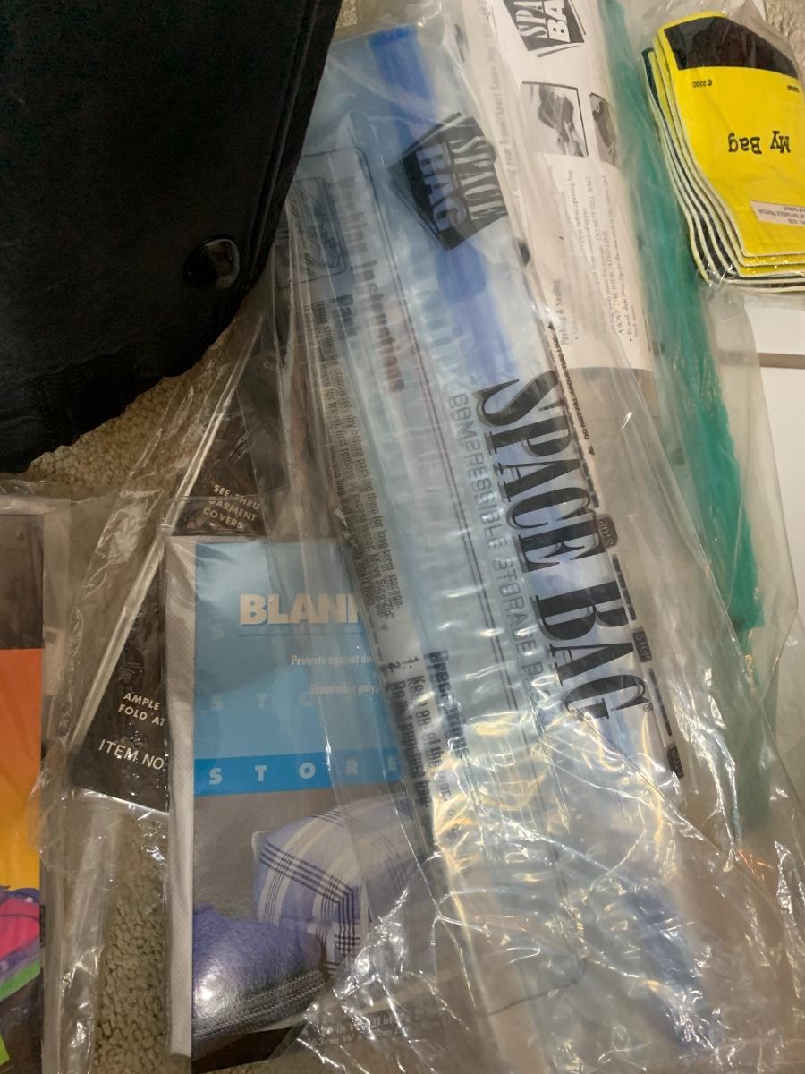 A few traveling bags, hard side brief case, luggage tags and space bags
