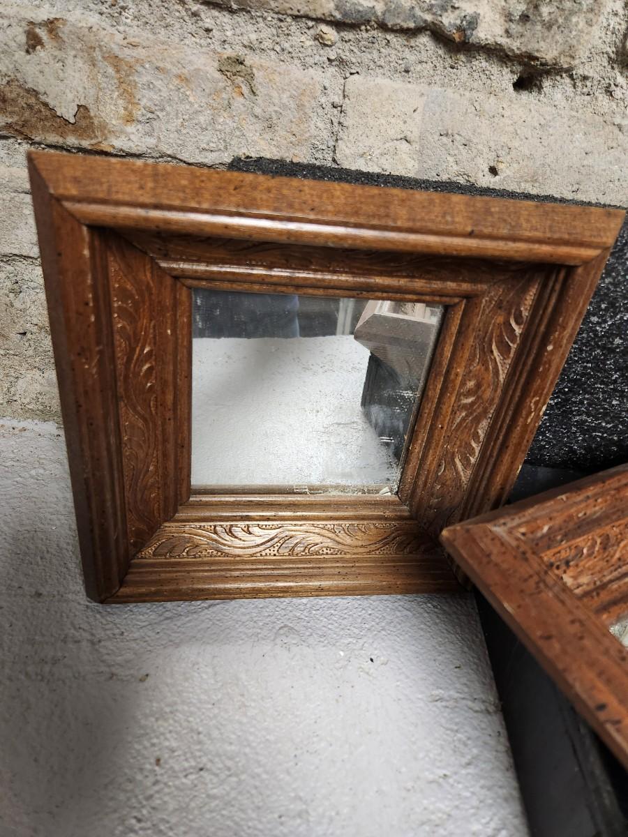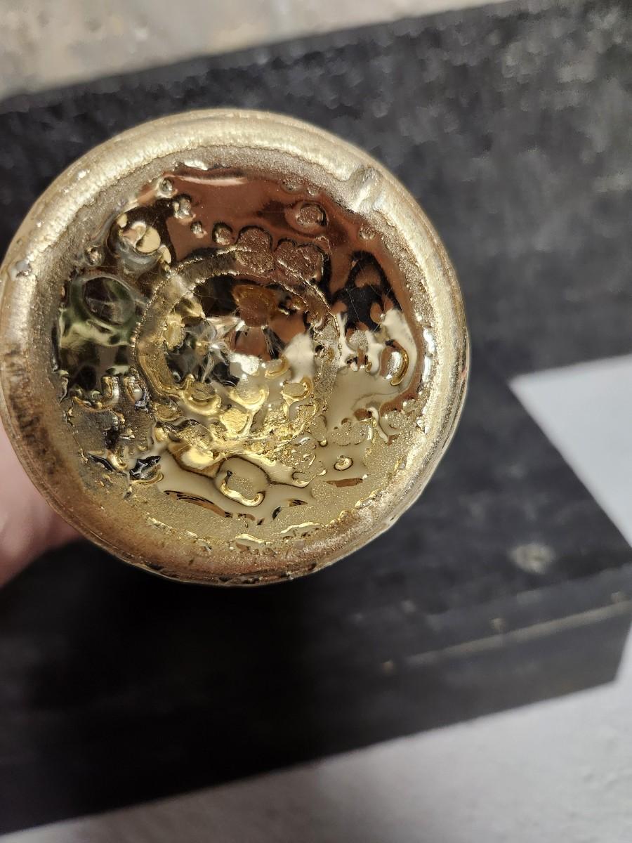 Pair of 8" mirrors, pair of gold pottery vases and a great lyre vase