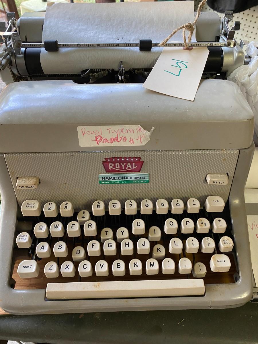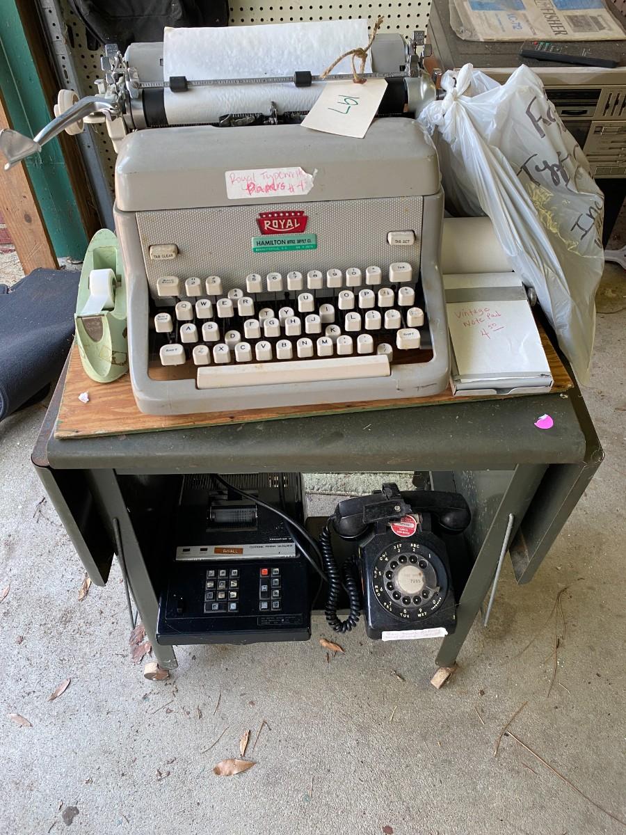 LOT 197 Royal Typewriter, Rotary Dial Black Phone, Typewriter Stand, Execruton Printing Calculator