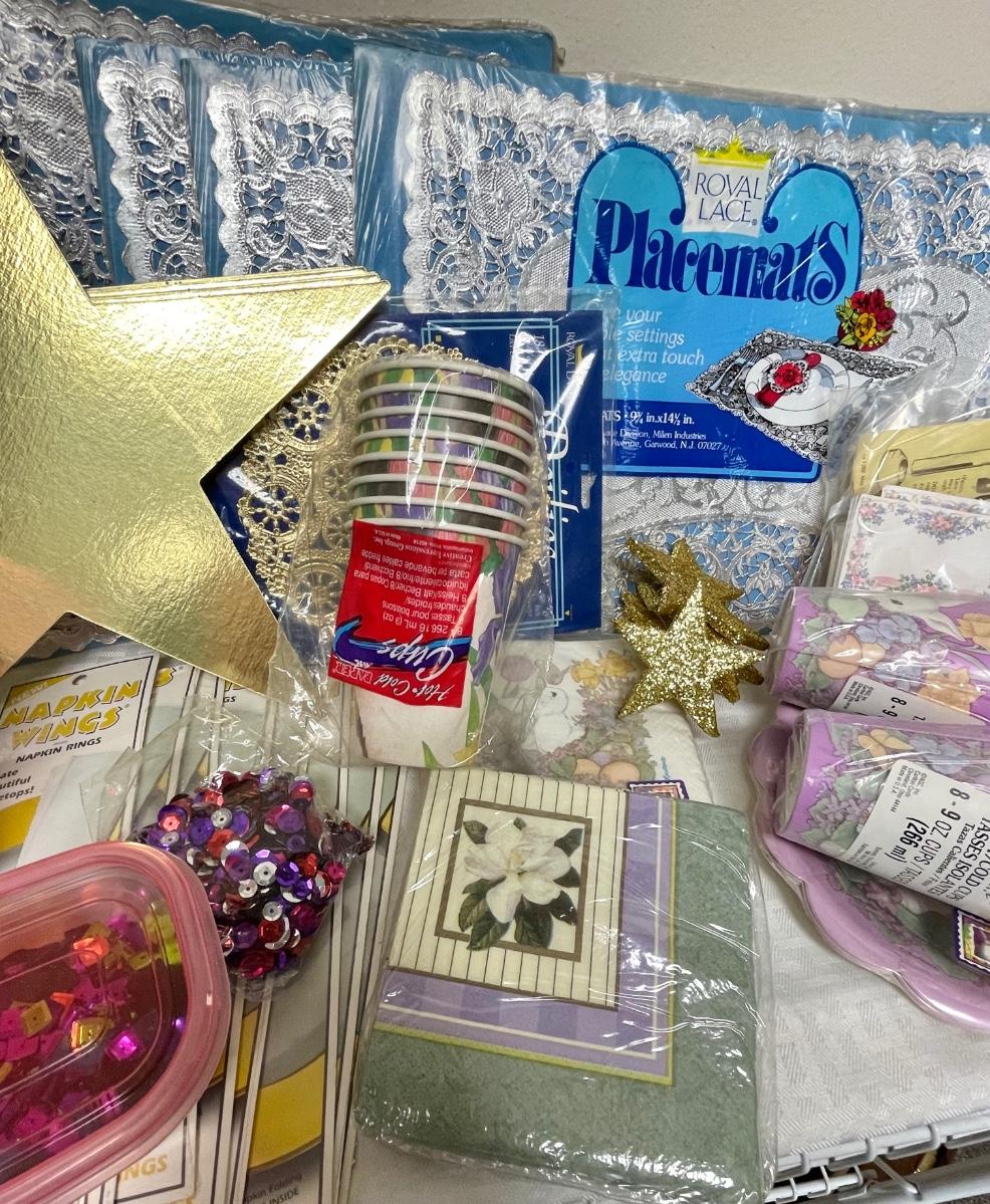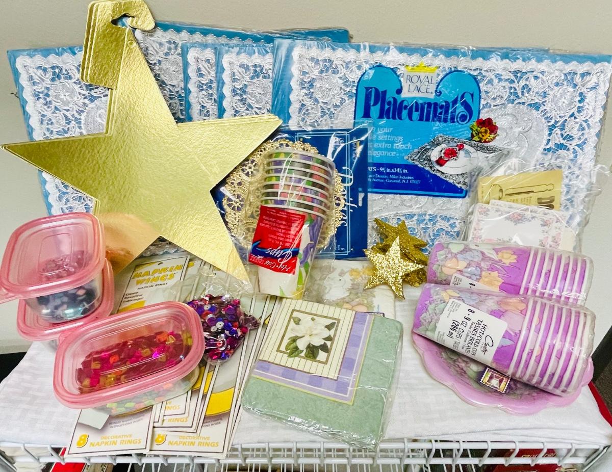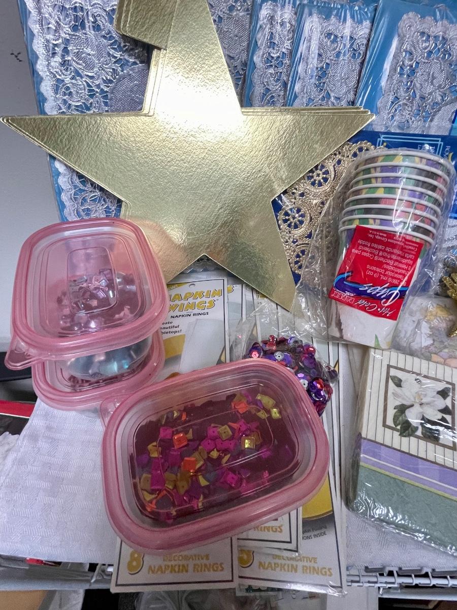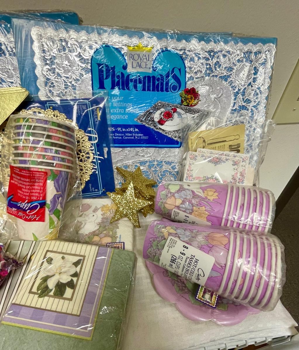 Misc. Party Supplies Lot - cups, plates, napkins, placemats, confetti, etc