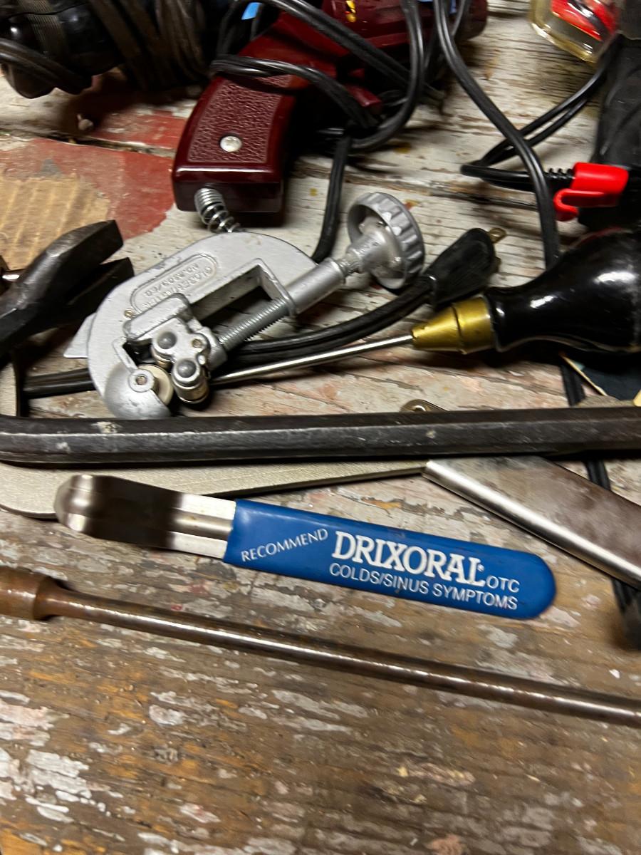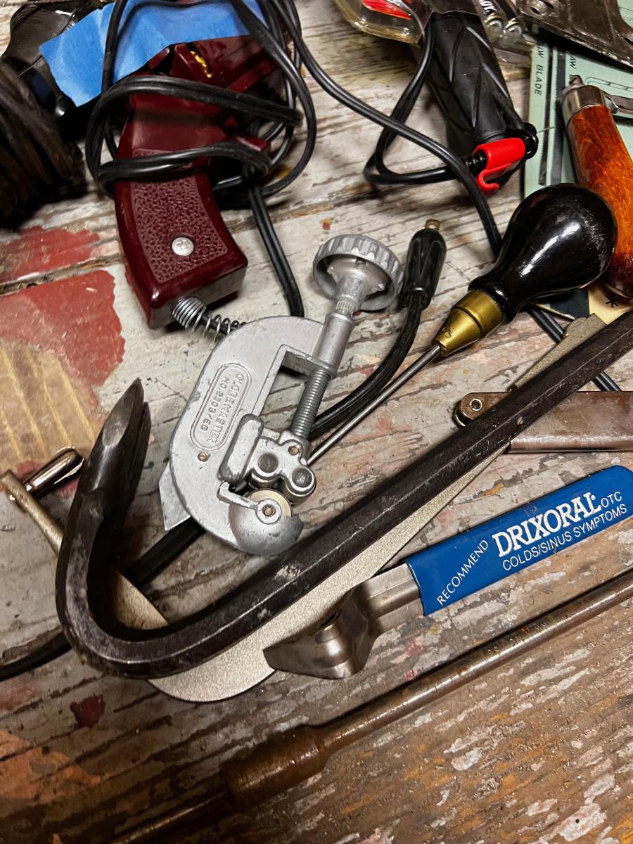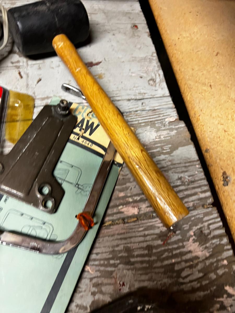Misc. Pile of Tools: Saw, Hammer, Rubber Mallet Knife Sharpener