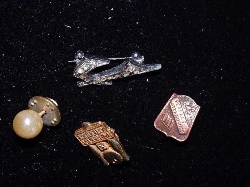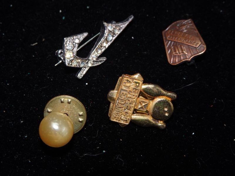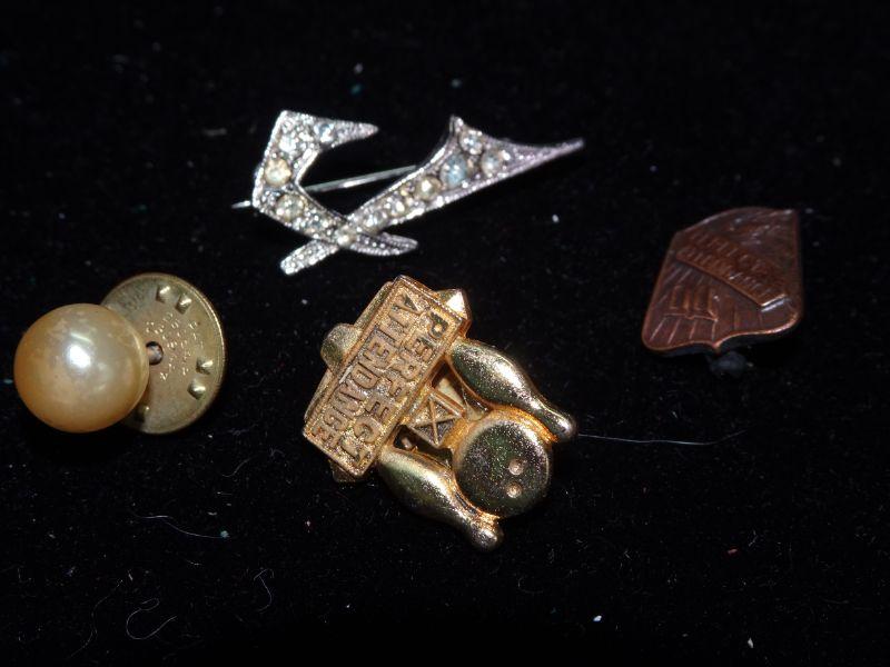 Misc. Pin Lot, Bowling, Letter J, Good Attendance and Pearl Tie Tack