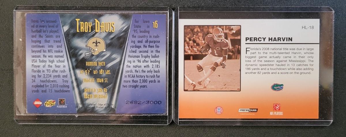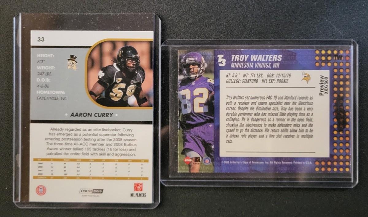 1997-2000 Collectors Edge Troy Walter's Rookie, 2009 Press Pass Aaron Curry Rookie, Troy Davis Numbered 2682/3000
