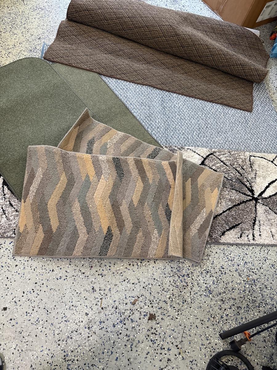 Runner 22” x 84”, scatter rugs, large 40’” x 58”, large green54” x 70”
