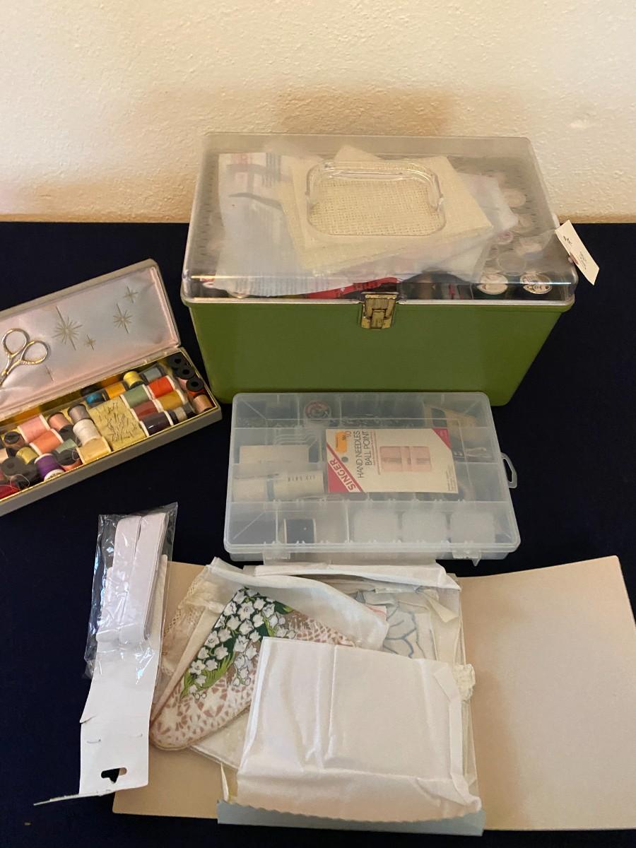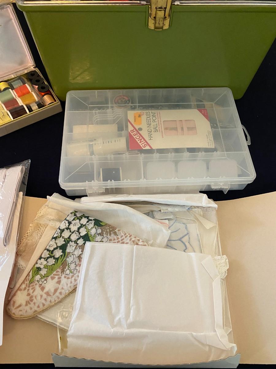 Misc Sewing Lot As Pictured Includes Old Hankercheifs