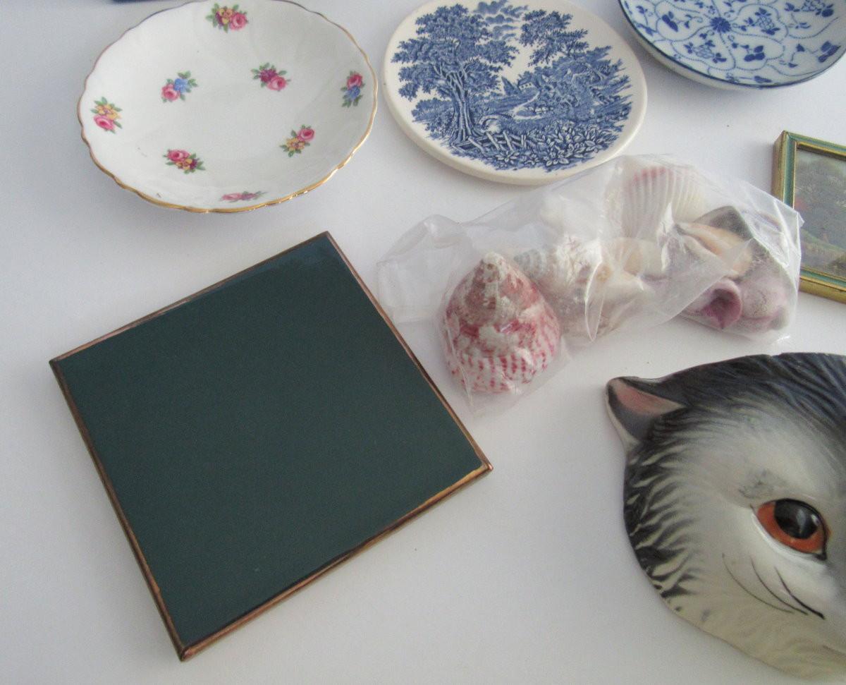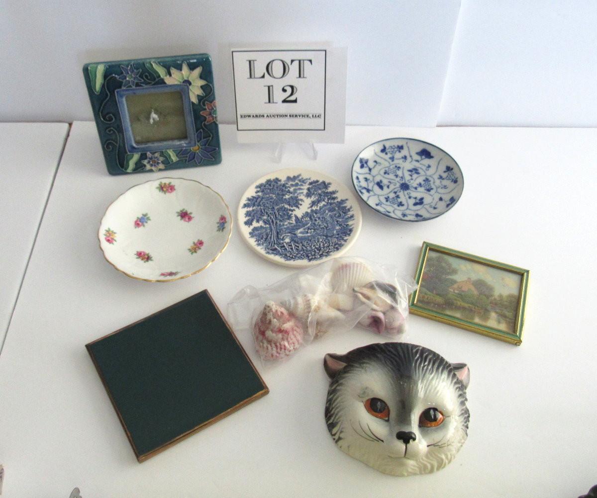 Misc Small Dishes and Picture Frames, Cat Wall Pocket, Read Description