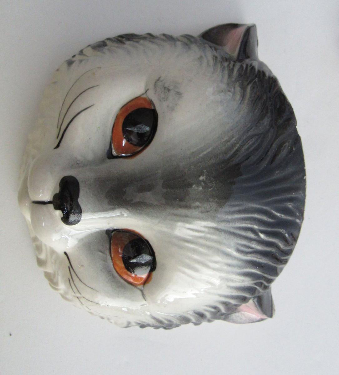 The cat wall pocket has a large chip on the inside rim as seen in close up photos. Everything else appears to be fine. There is sticker glue on the pottery frame. Shipping is available on this lot with additional shipping and handling fees. See our terms for details.