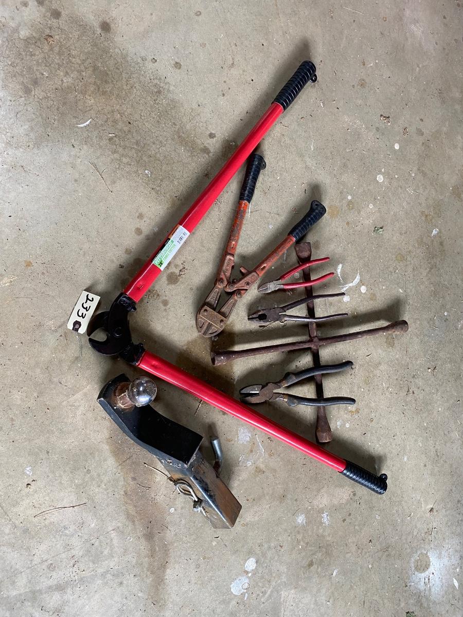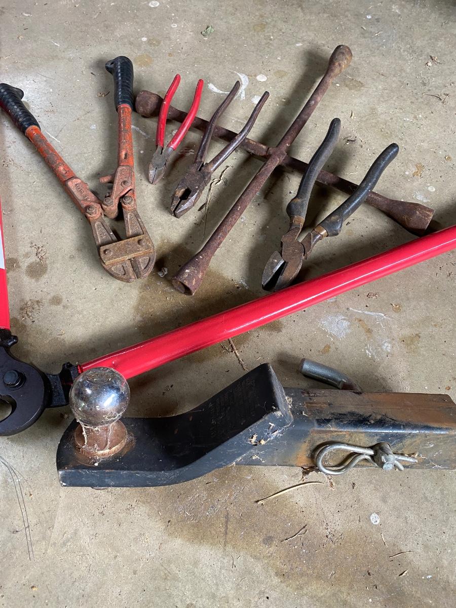 Misc Tool Lot Includes Hitch Reciever, Bolt Cutters, and Plyers As Pictured