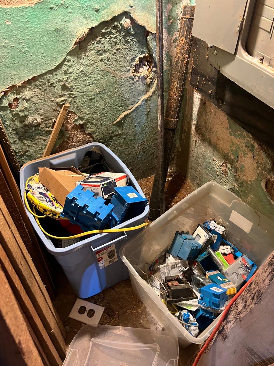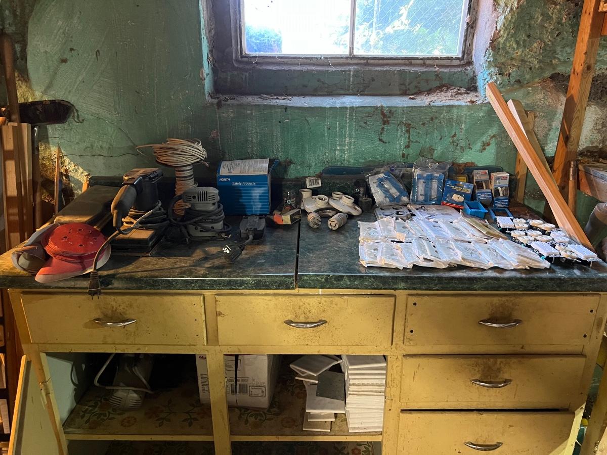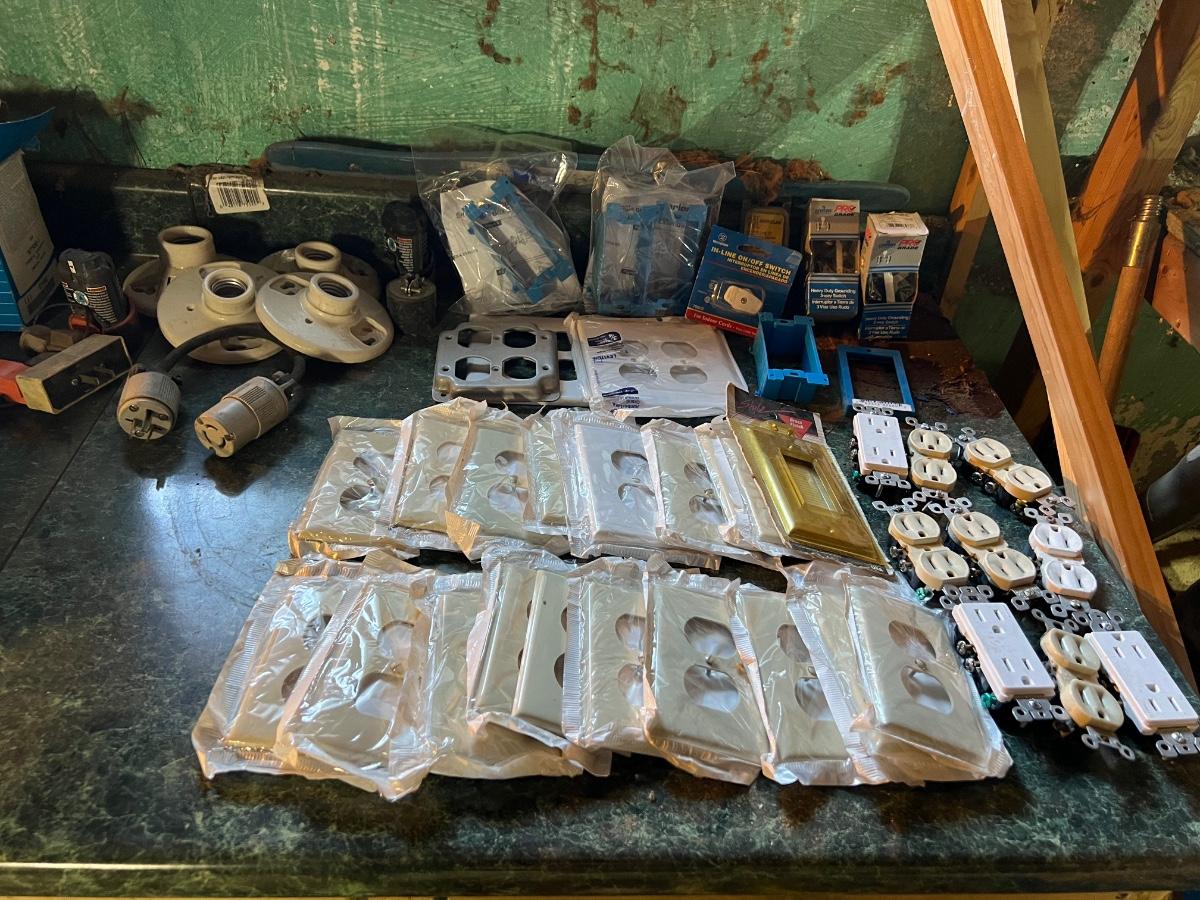 Misc Tools, Tiles, Tile Cutter, and Electrical Wiring Components (basement)