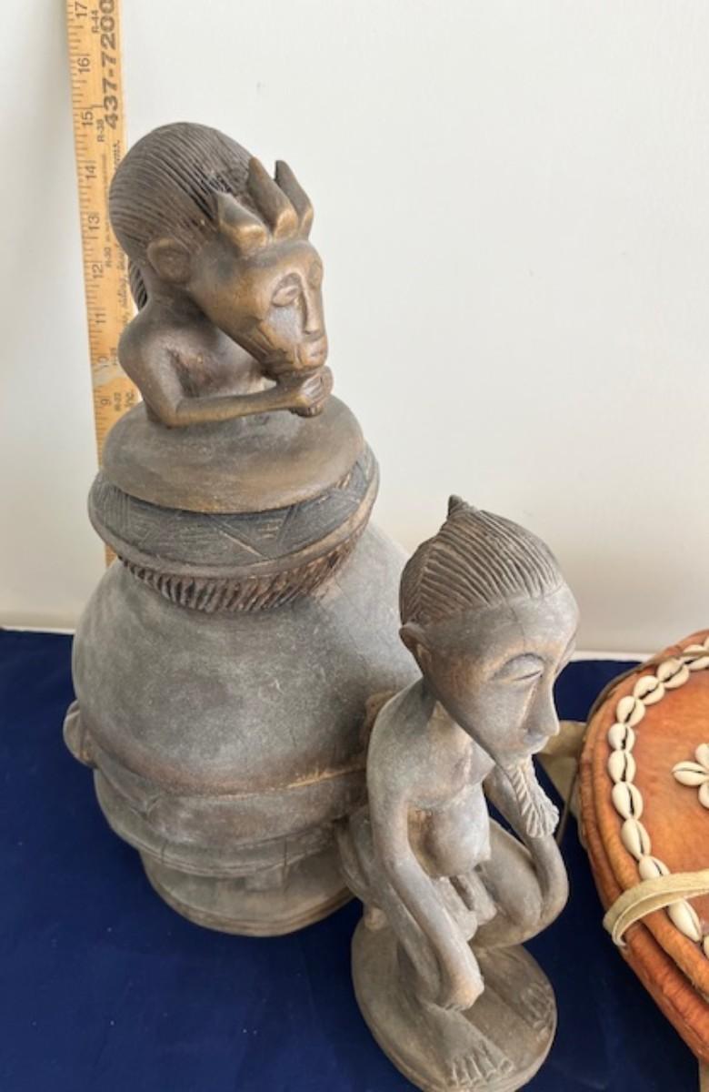Baule tribe medicine containter, 16 x 12, Ethiopian leather basket.