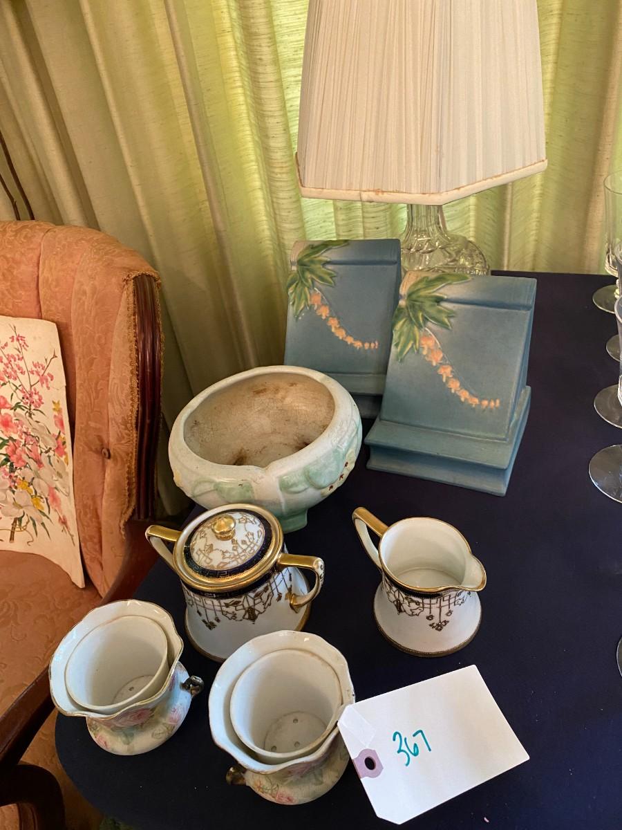 LOT 367 Royal Bayhr, Nippon, Weller Pottery, Roseville, Cut Glass Decanter Turned Lamp Lot