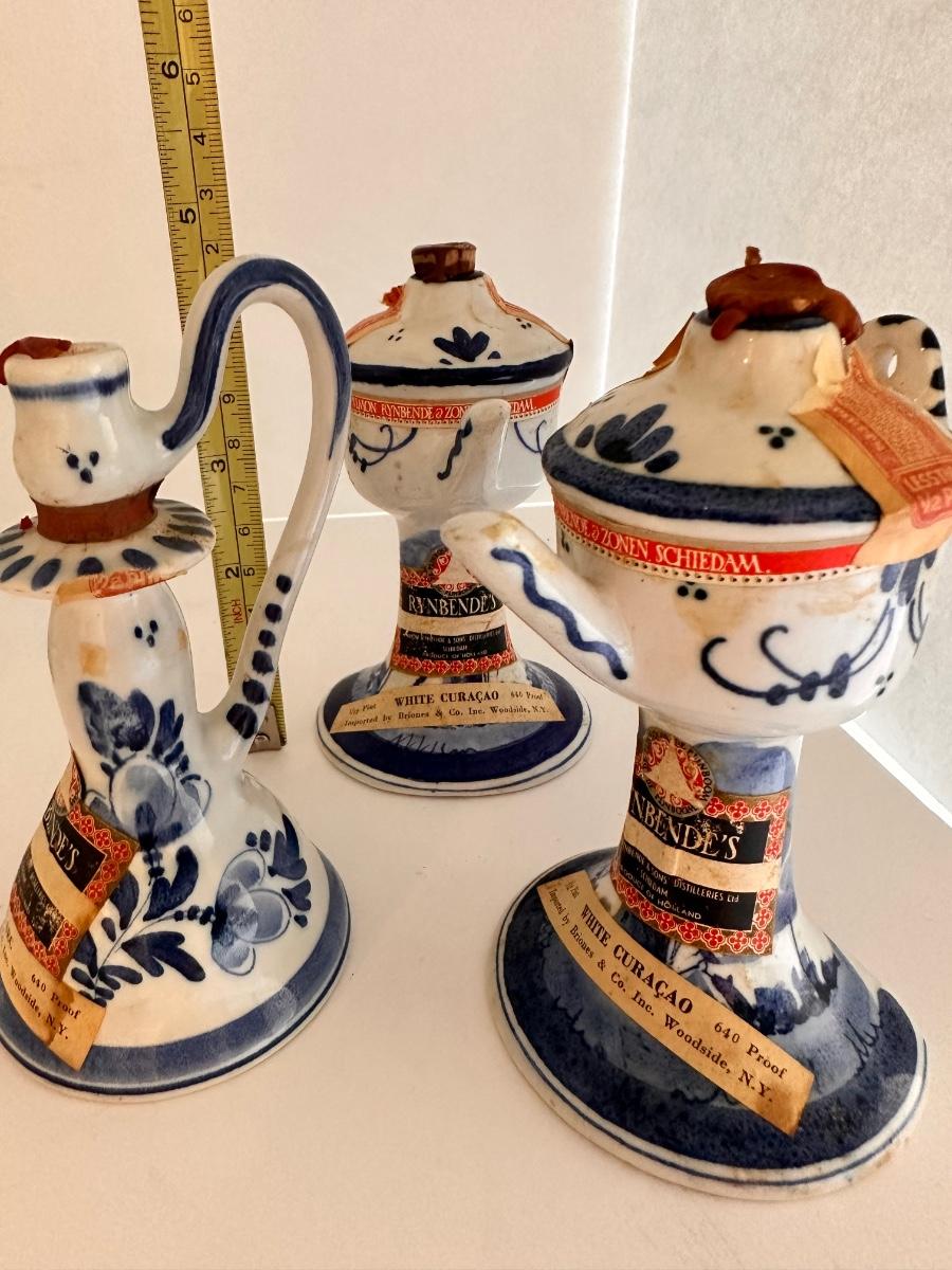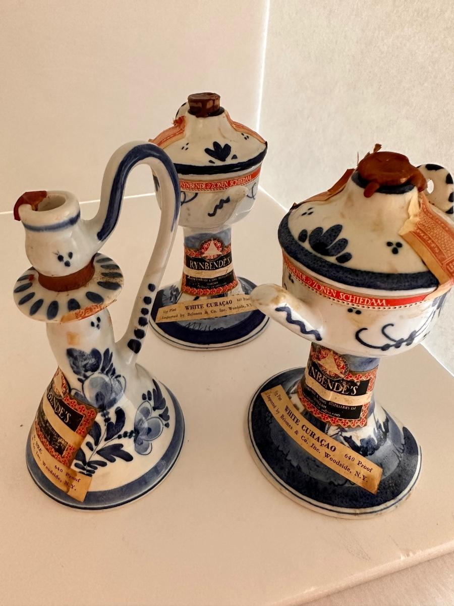 Misc Vintage Collectable Glassware Lot, Includes Delft, White Curacao Collectable Mini Bottles (EMPTY) As Pictured
