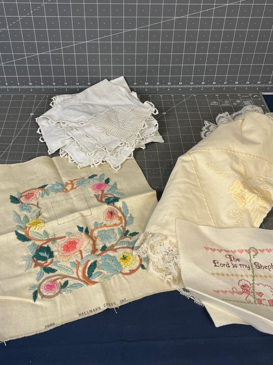 Misc. Vintage Crochet Napkins and Crewel Art.