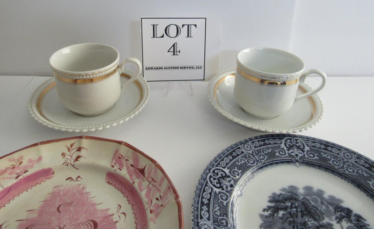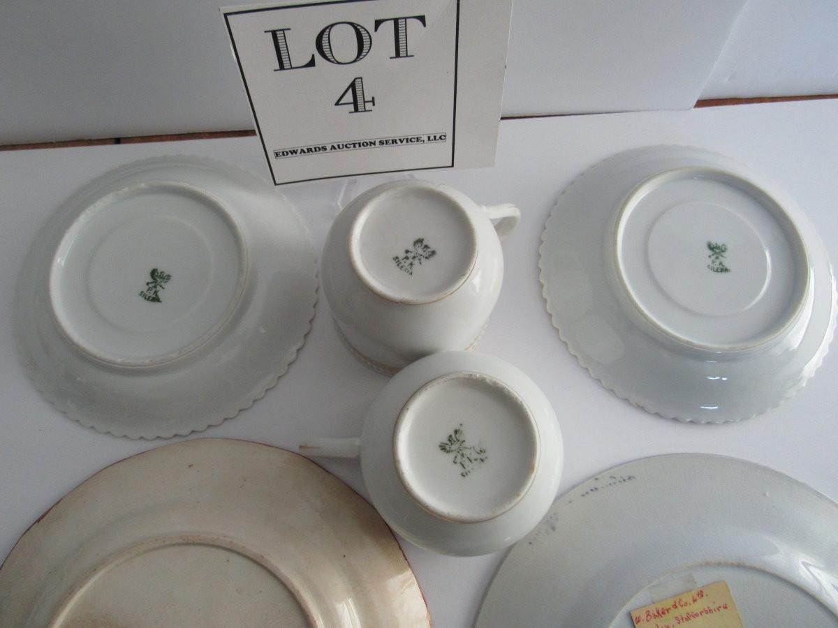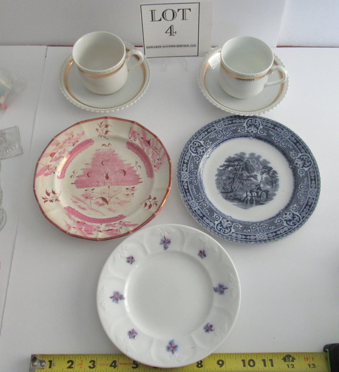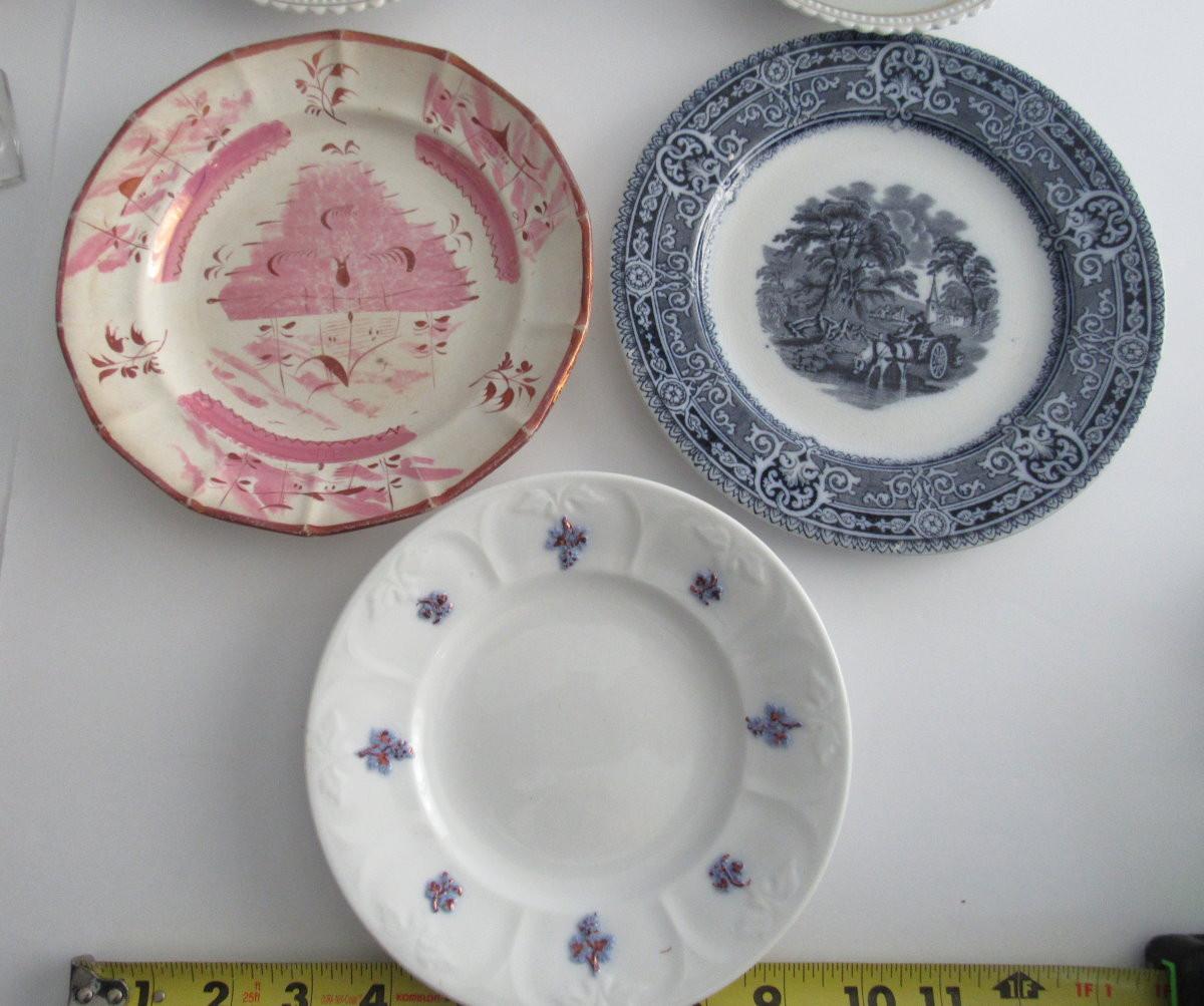 The pink lusterware plate has finish wear and stained back. The rest look fine, don't see any chips or cracks. Shipping is available on this lot with additional shipping and handling fees. See our terms for details.