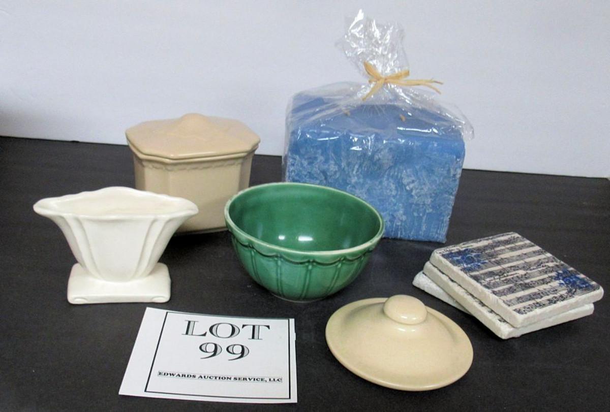 Stone coasters, Syracuse China Econorim covered dish, the little green bowl has hairline cracks. Shipping is available at shipping cost plus $5.00 handling fee on one box, $10.00 handling fee on two boxes, $15.00 handling fee on 3 boxes. Helps cover shipping materials and labor cost.