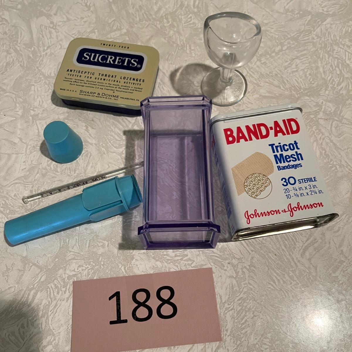 Eye wash, tin bandaid box + more
