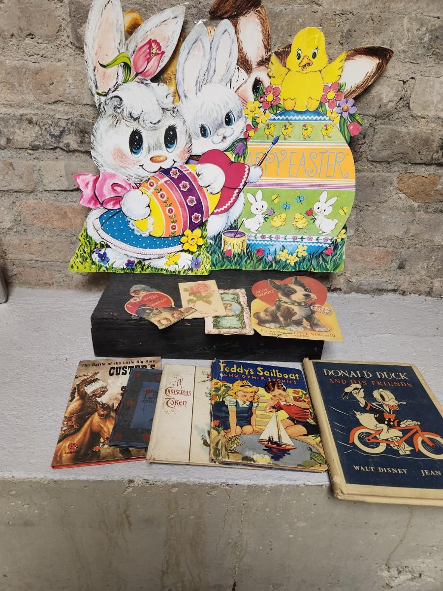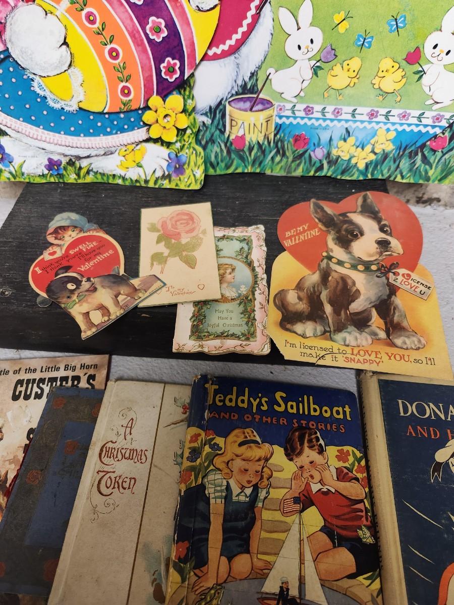 Cute Easter cut outs...super vintage colors!! Interesting lot of misc vintage emphemera.