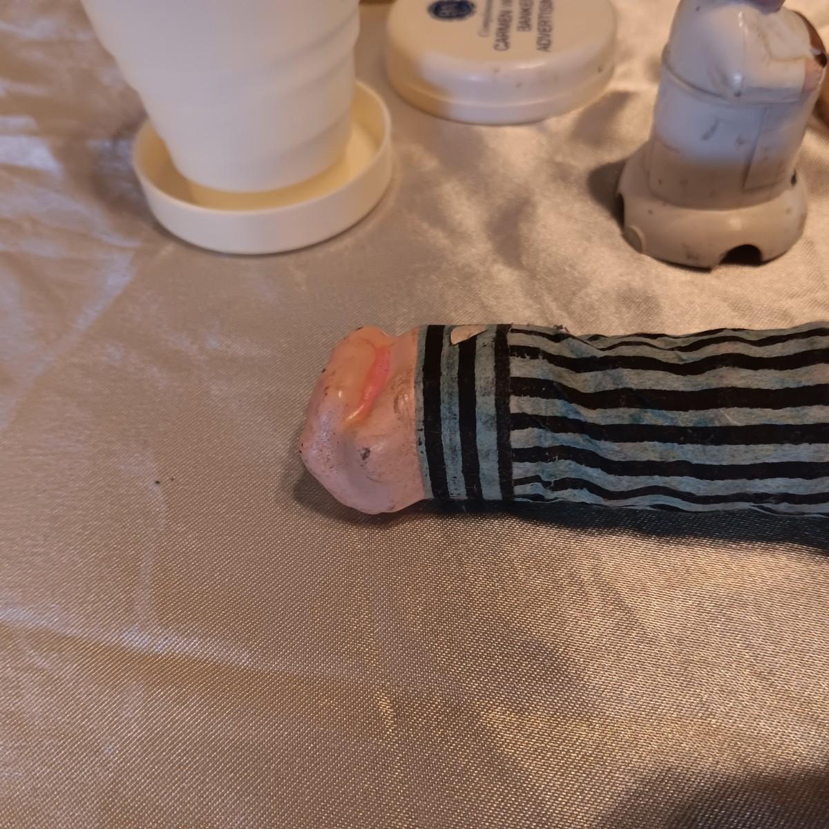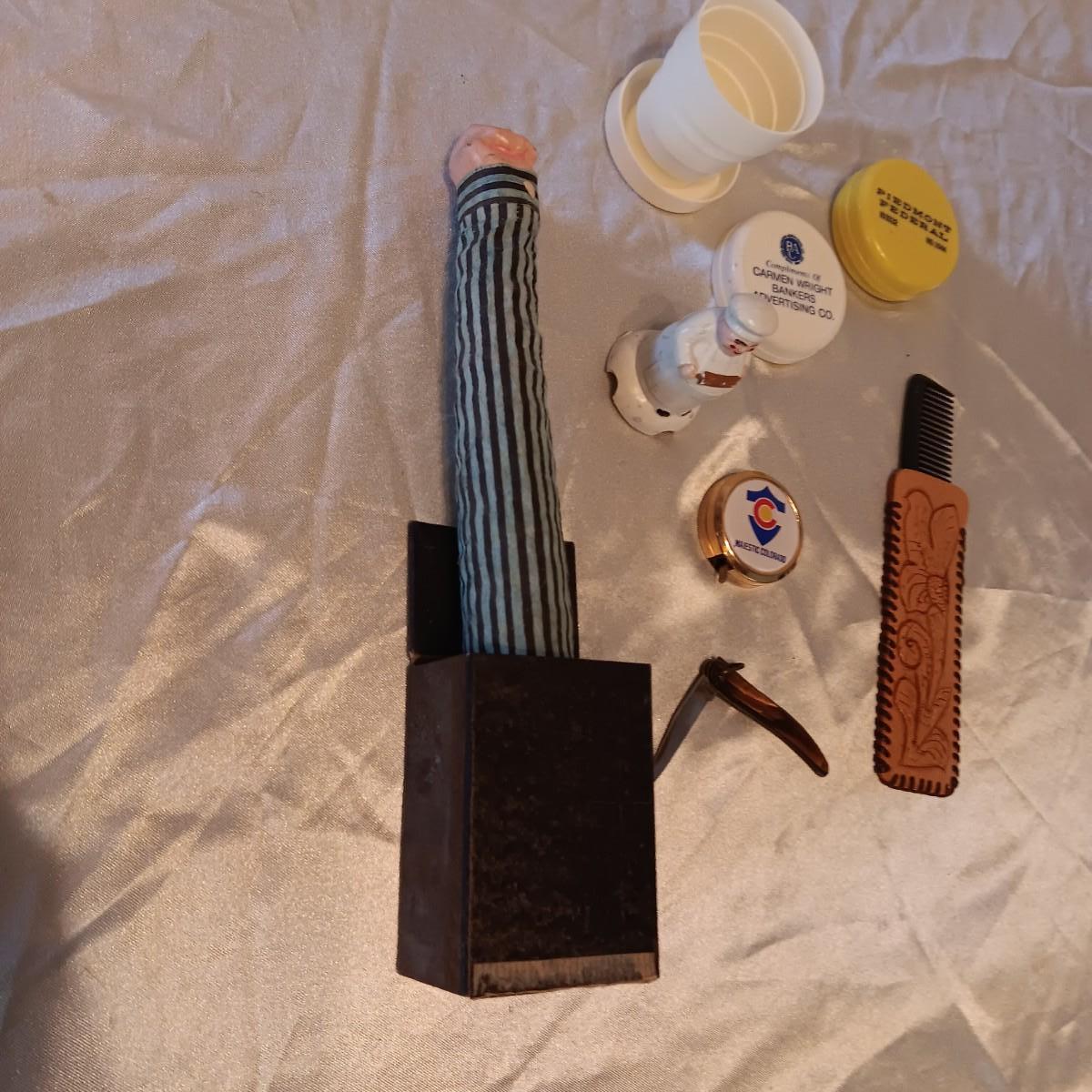 SPRING LOADED ARM TO POP OUT OF BOX UNFORTUNATELY, THE BOX IS MISSING THE TOP TO KEEP ARM IN