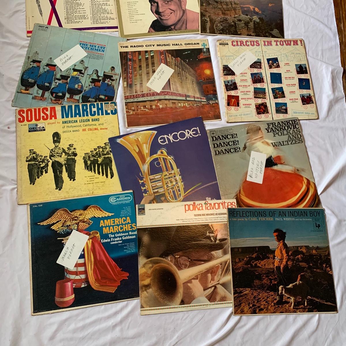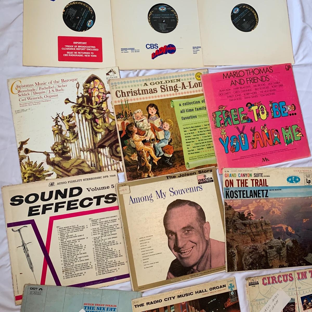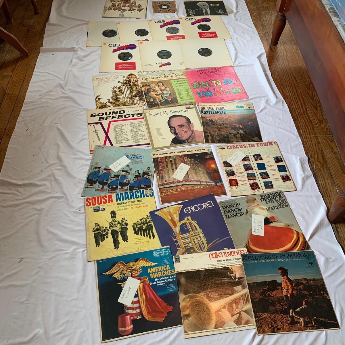This lot contains an interesting collection of Foreign, mostly French music albums with some English and Spanish also. There is a small grouping of religious records, and an odd group of marching bands, polka, poem readings, holiday records, sound effects and more. Collection of CBS radio recordings of songs. Album covers are in varying conditions and appear to have their original lp inside. Shipping available.