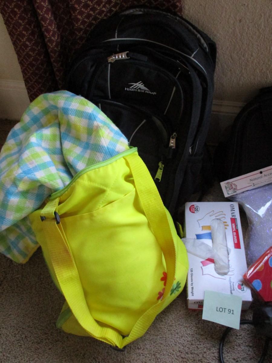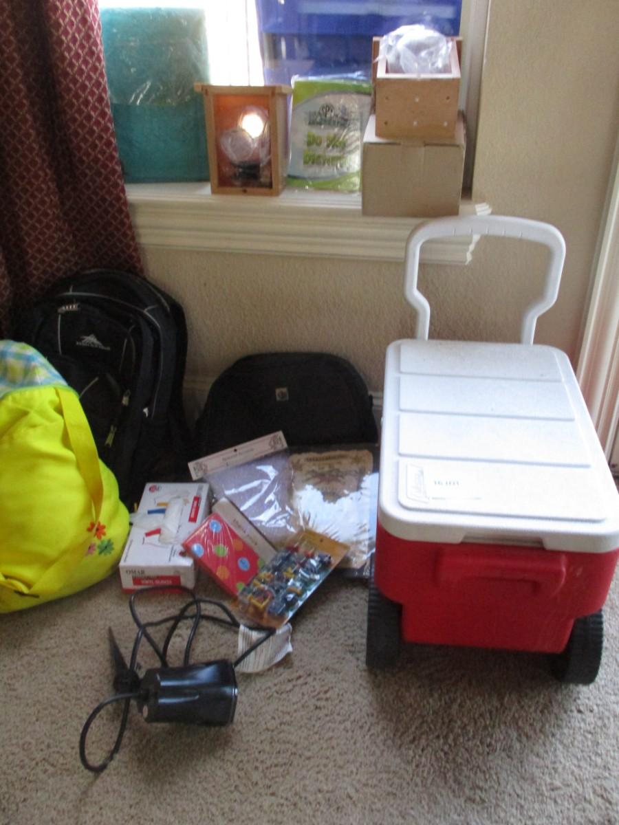 Cooler, Strobe Light, Blanket in a Bag, Backpack, small birdhouse kit