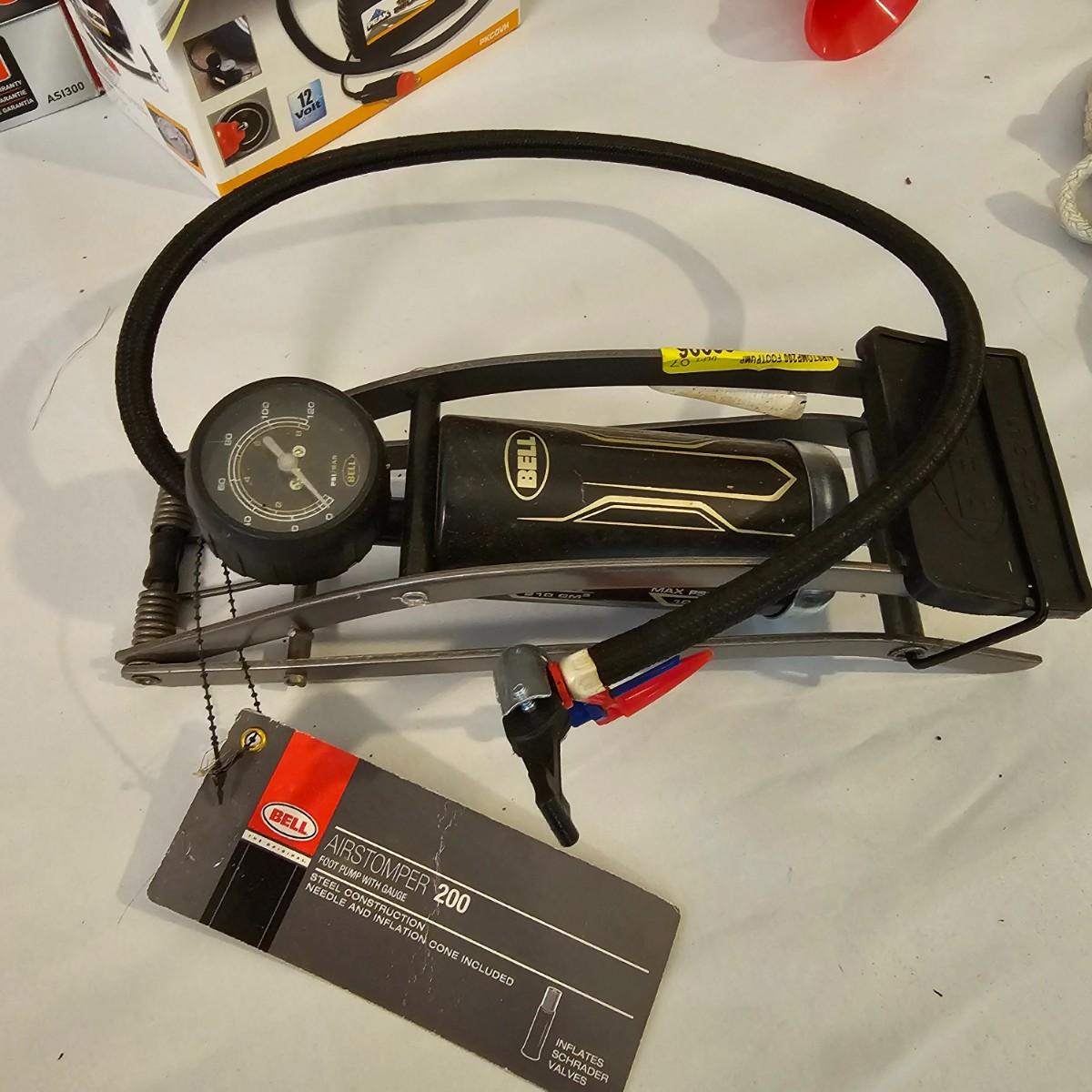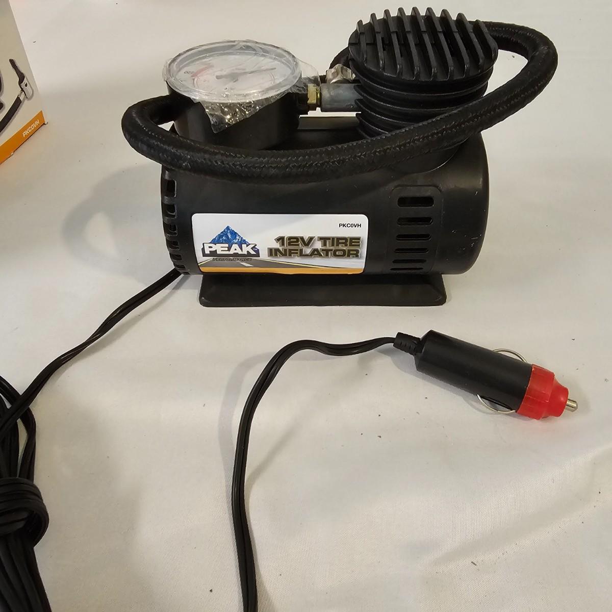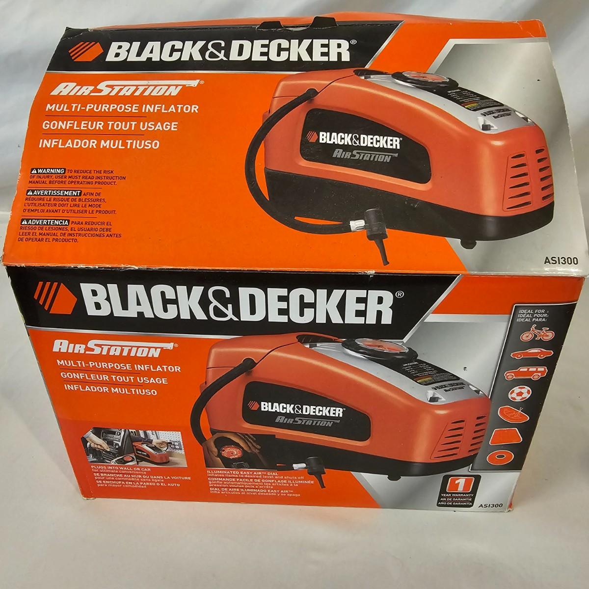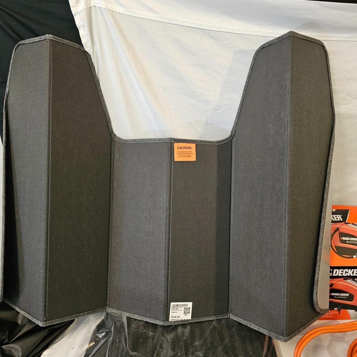 Assorted items for car care and more. Jumper cables, two cans fix a flat, some funnels, two different air compressors. Also some decor parts for Subaru Outback, floor mats and a sunshade, new in packages. Black & Decker Air Station compressor uses AC or DC. All plug in items powered on when plugged in. See photos for details. Local pickup only.