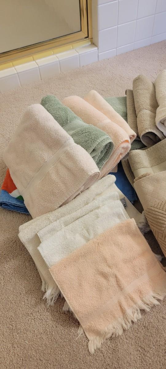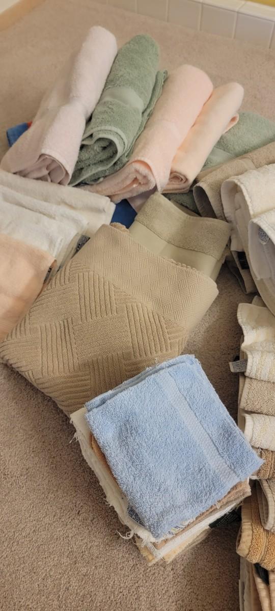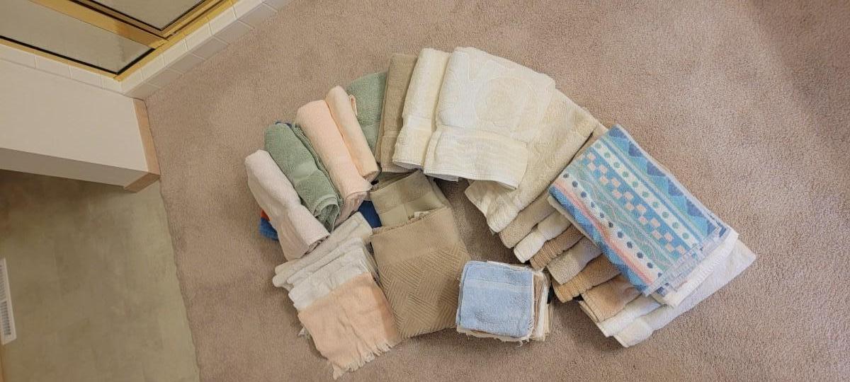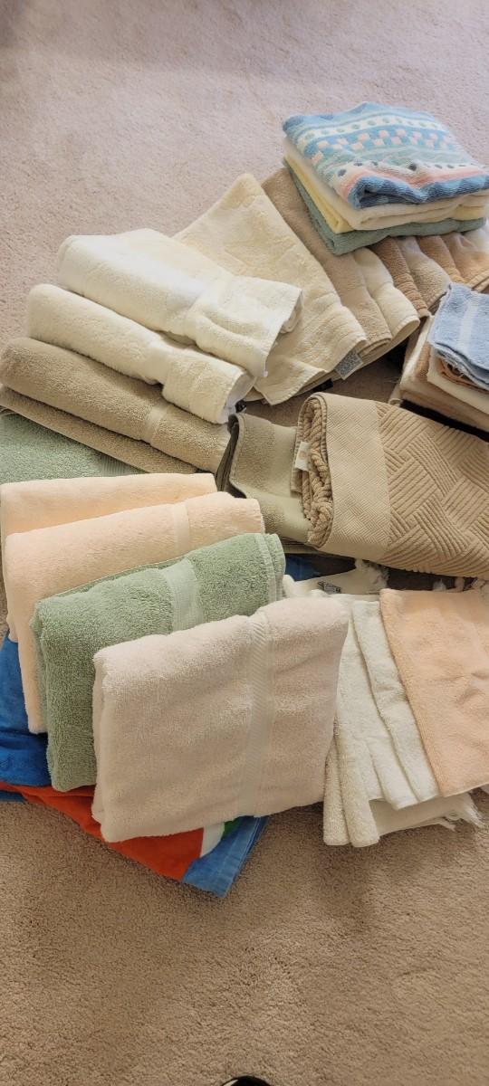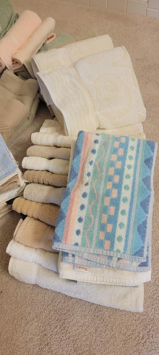 Miscellaneous bath towels, wash clothes, finger tip towels.