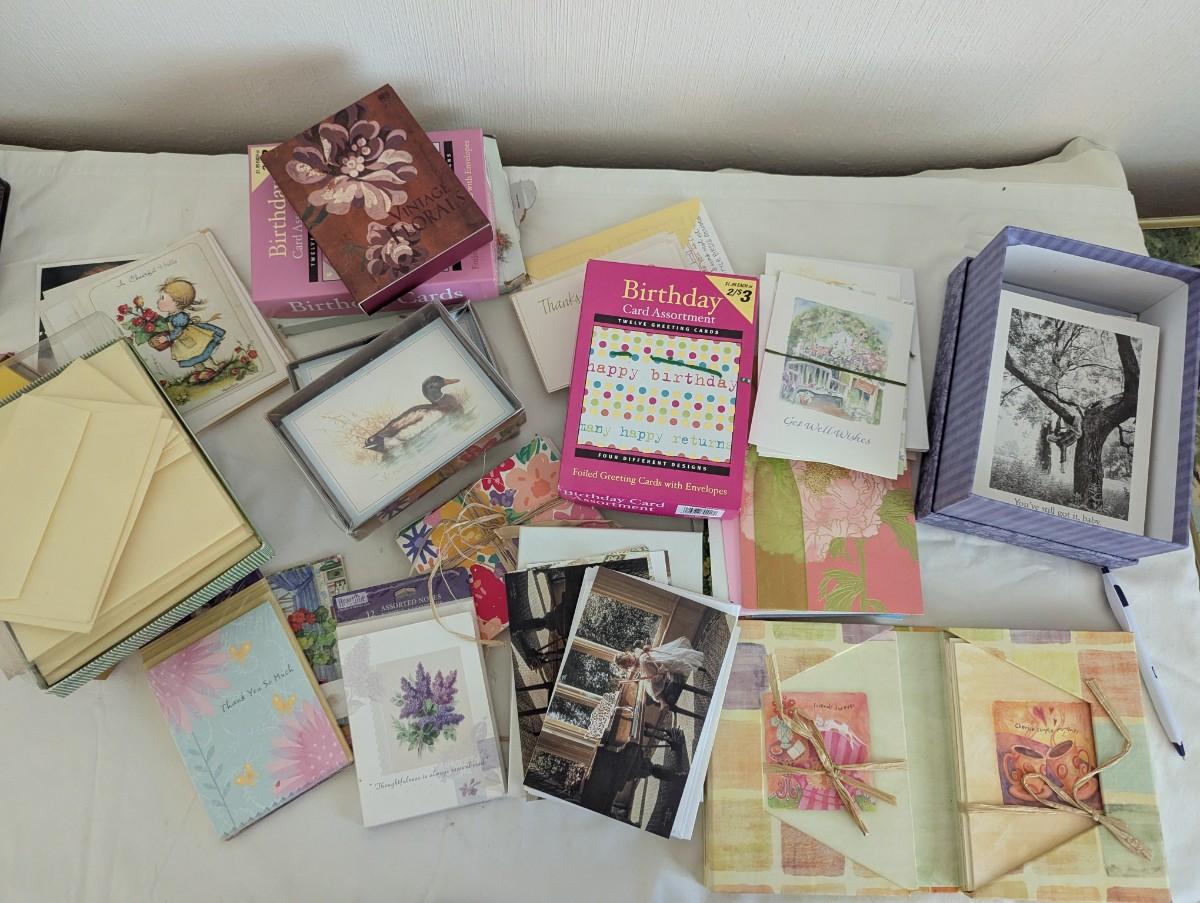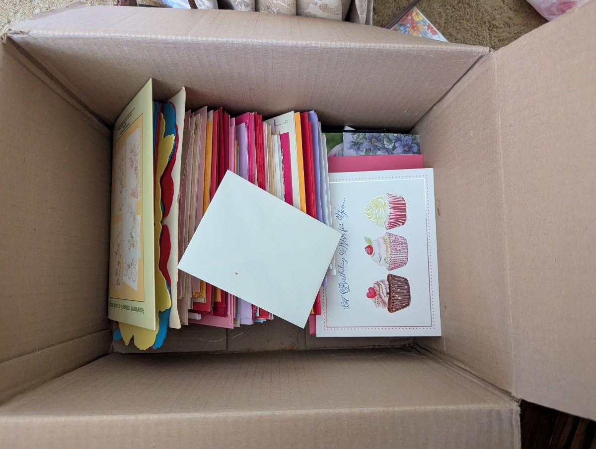 box of miscellaneous cards and stationary.