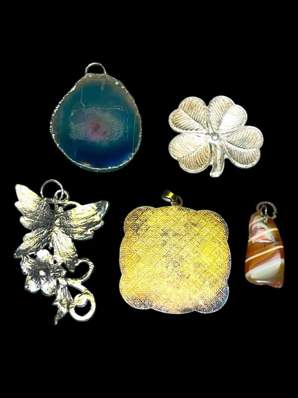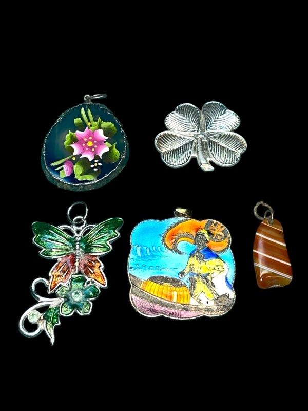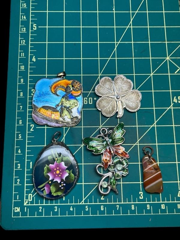 5 Misc, Charms & Pendants, Enamel Pendant, 4 Leaf Clover, Butterfly Pendant, Enameled Pendant, Polished Stone Charm