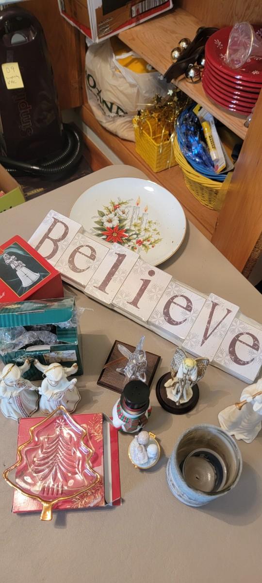 Miscellaneous Christmas angels, figurines and Believe sign