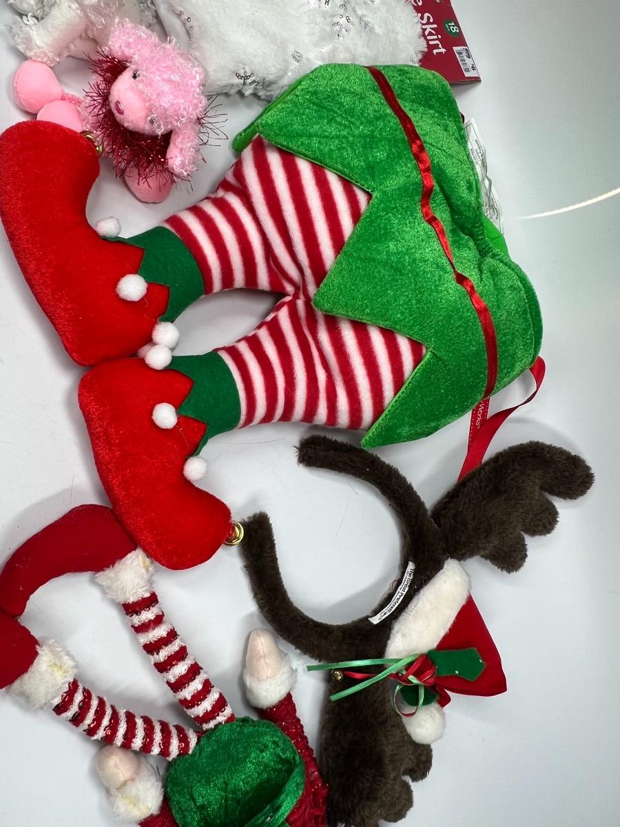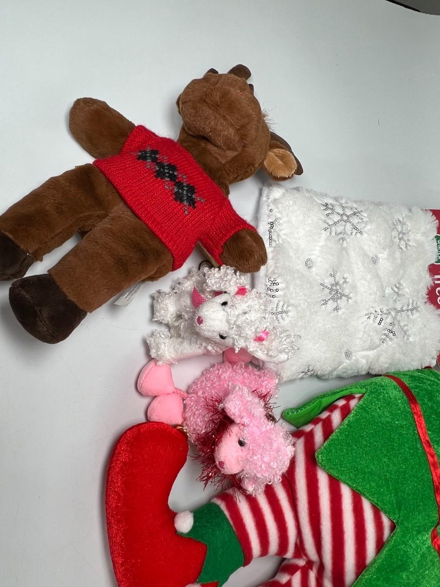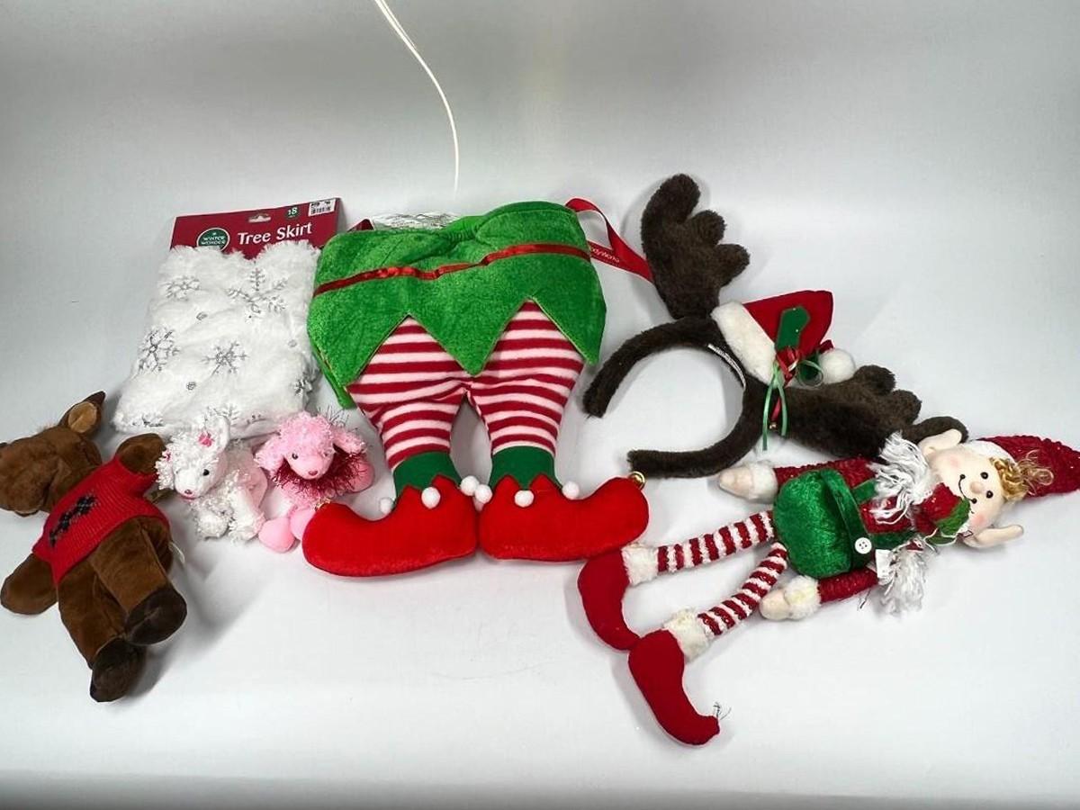 Miscellaneous Christmas Lot Holiday Tree Skirt, Reindeer Antlers, Plushies & More