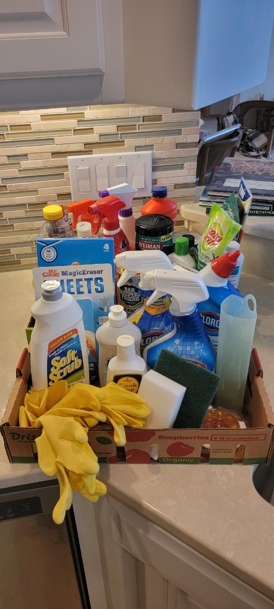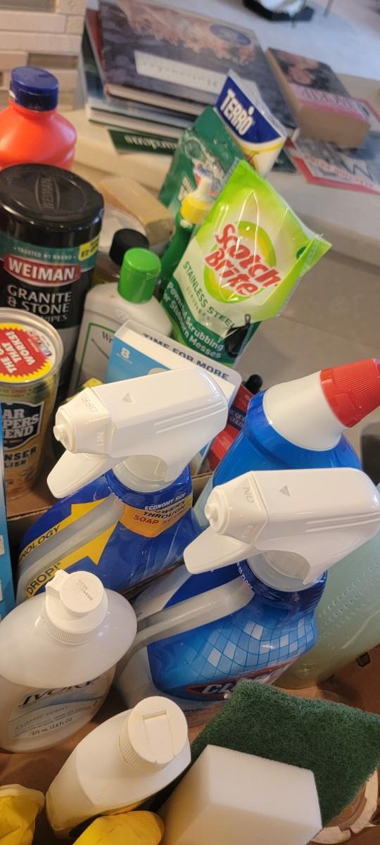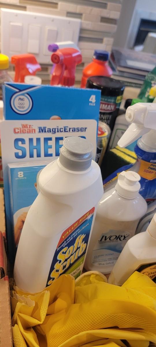 Mr Clean Magic Erasers, Clorox spray, Comet and many more utility cleaning supplies.