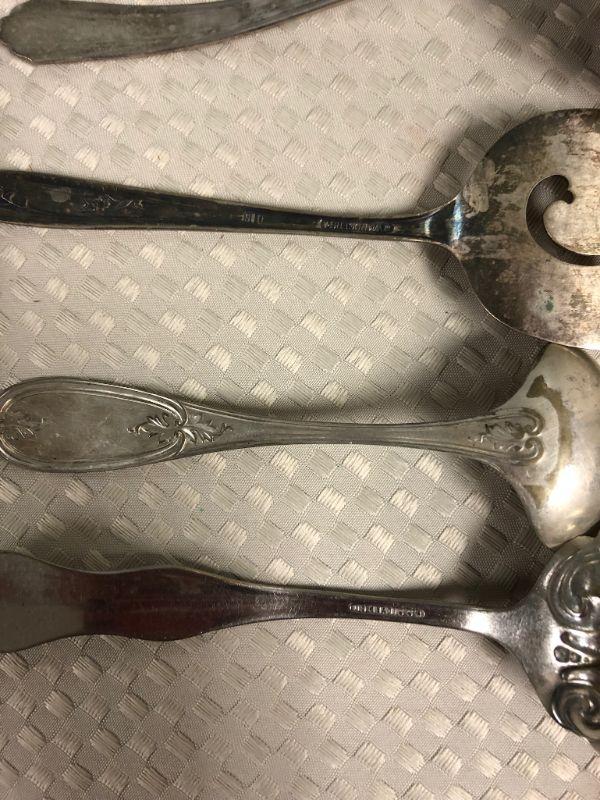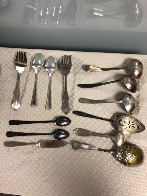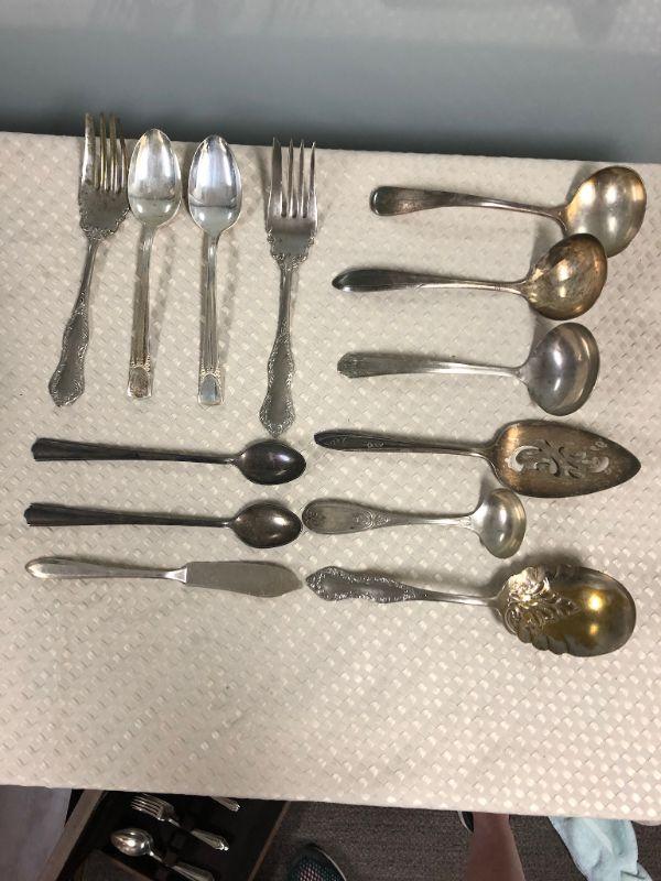 Miscellaneous flatware serving pieces. 13 pieces. Various patterns. Previously owned.